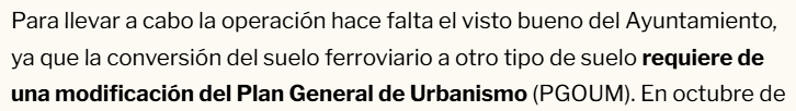 Cuando Adif decida lo que quiere o no quiere hacer con los terrenos DE SU PROPIEDAD, el Ayuntamiento aprobará un Plan urbano igual que ha hecho, repito, en Chamartín, en Campamento o en la cárcel de Carabanchel.