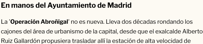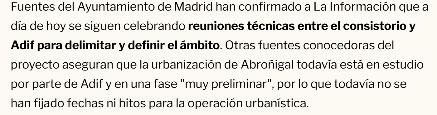 Pero vamos a ver, el Ayuntamiento puede decir misa y el COAM puede hacer todos los concursitos que les venga en gana, pero hasta que Adif no decida abandonar la actividad y vender (o desarrollar) sus terrenos en Abroñigal no se va a mover un solo gramo de tierra. ¿Qué es lo que no entiendes?