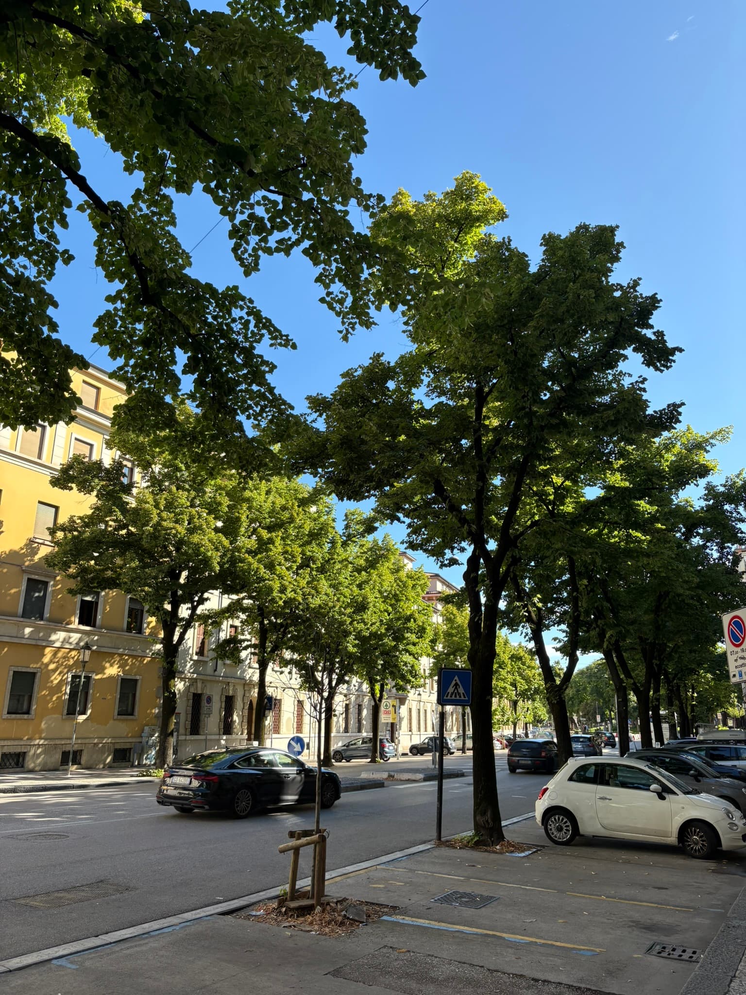 Me ha llamado la atención el buen cuidado del arbolado en Verona. Los plátanos de sombra podados como toca, incluso en la acera de la izquierda, más estrecha, de forma simétrica para evitar inclinaciones poco deseables, además de una forma mucho más natural de la que estamos acostumbrados en Madrid. Y por cierto, todo muy muy limpio.