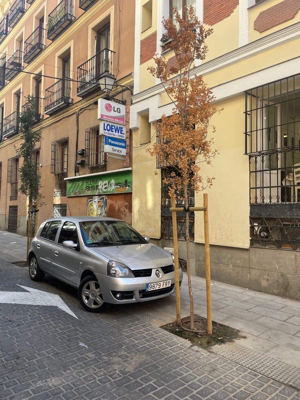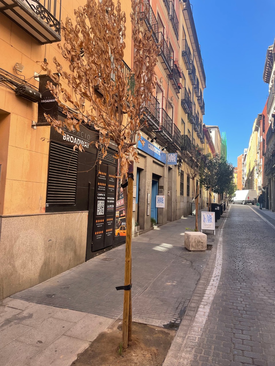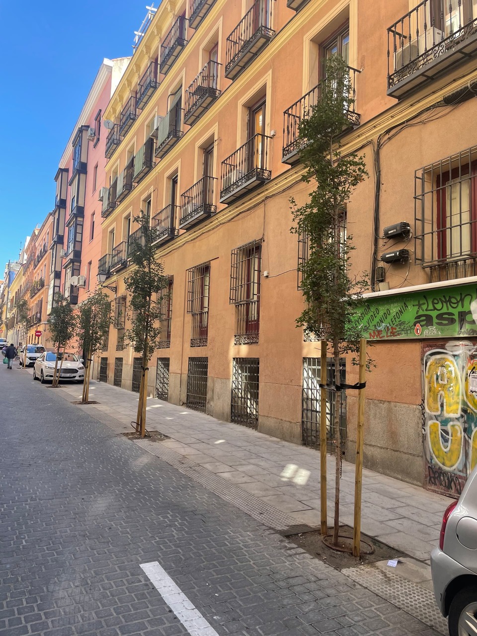 Ya sé que el ancho de la calle no da para mucho mas, pero… no sé. Medio metro mas alejado de las fachadas al menos en una de las aceras si no en ambas.