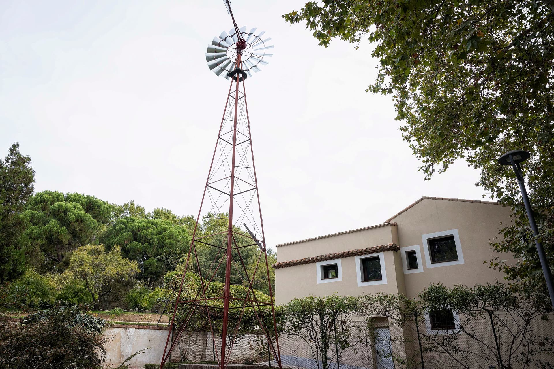 El situado en la rosaleda tiene 14 metros de altura, 500 kg de peso (la suma de las aspas, el motor y la cola, sin tener en cuenta la torre) y el diámetro de su circunferencia es de 3,80 metros. Mientras que el ubicado junto a la Casa del Reloj suma aproximadamente 12 metros, pesa 200 kg y tiene una circunferencia de 2,40 metros.