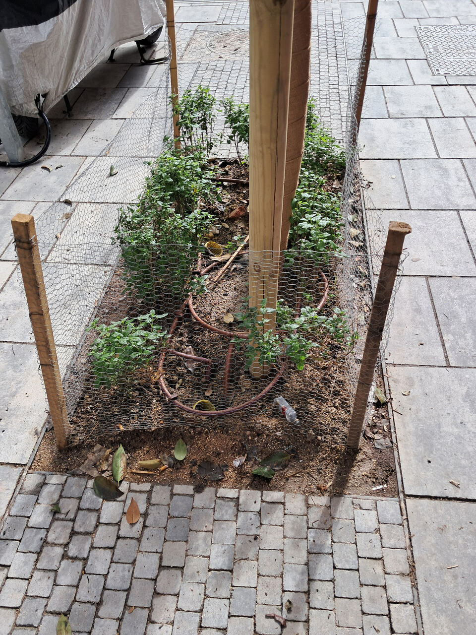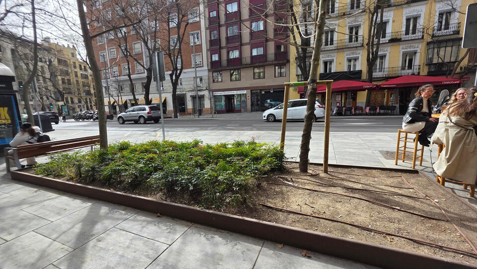 Así estan los alcorques que gestiona el edificio de Luchana 23 (que pidió que la reforma de Olavide se extendiese delante de su puerta y correrían con los gastos)