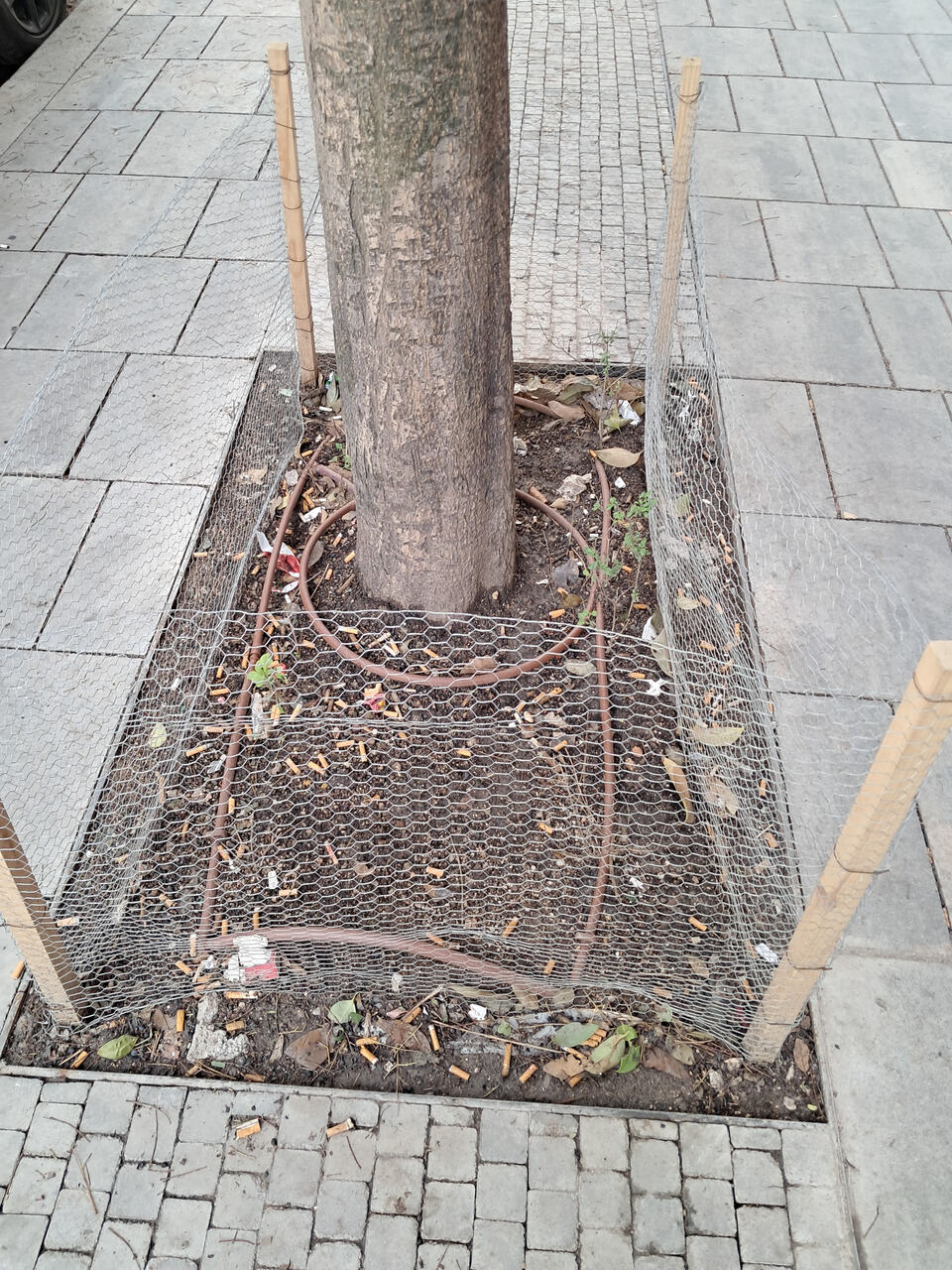 Uno de los nuevos alcorques de Alejandro González. Tiene un bar alado y lo han convertido en un cenicero más. Que gente tan cochina.