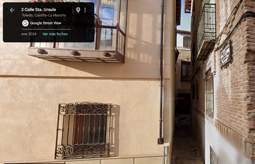 Viajamos a Toledo, a nuestra otra mitad del pan del bocadillo. Y claro, no tardamos en ver que allí los muros tienen mucha tela que cortar. Y como en la bendita Toledo hay de todo pues…si nos ubicamos en la torre del Salvador, en la calle del Santa Úrsula, nace un pequeño callejón, de esos tan toledanos que nos llevan a cápsulas donde el tiempo se quedo estancado y en donde Google, no consigue entrar.