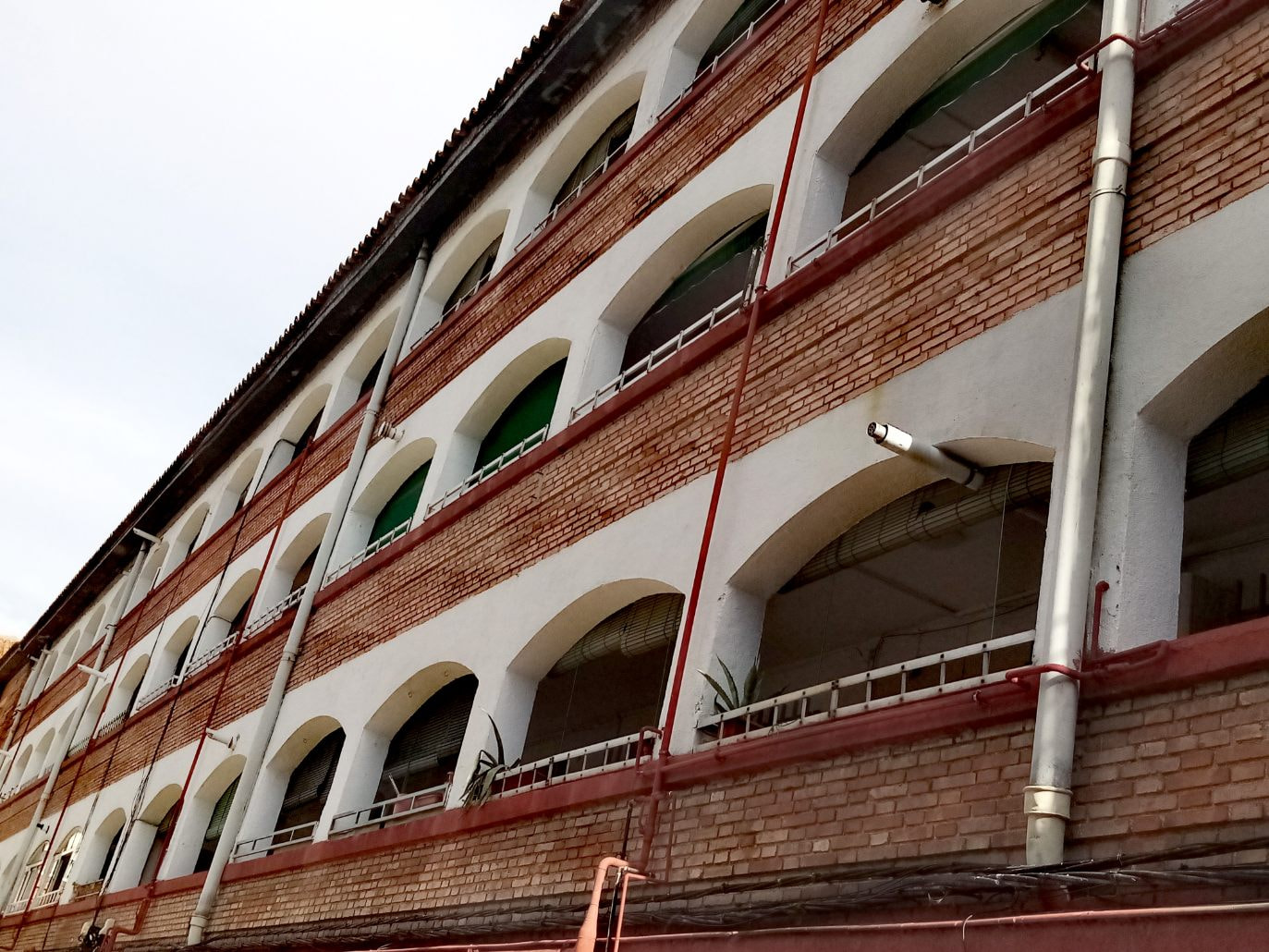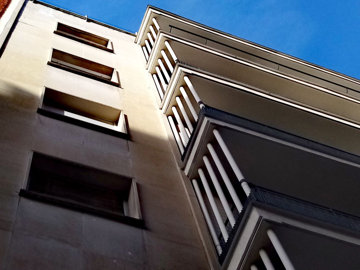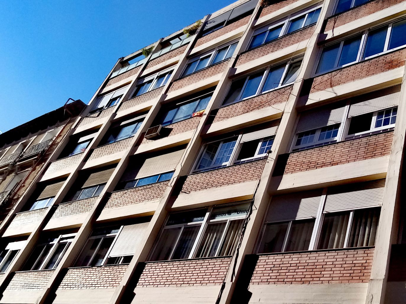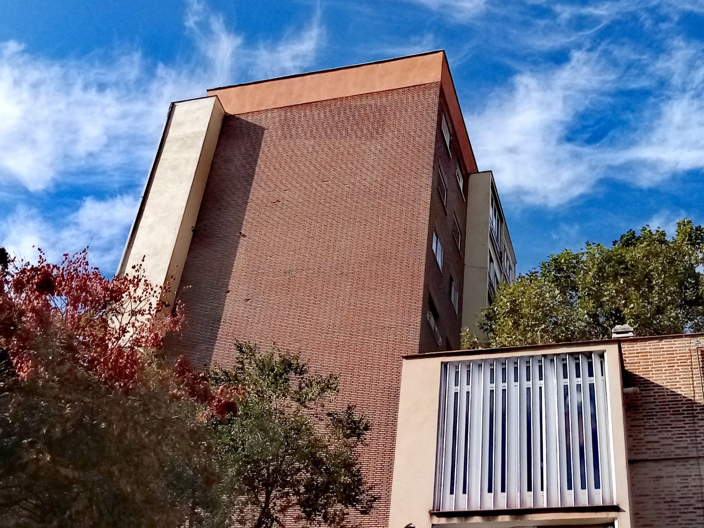 Antonio Fernández Alba, viviendas para Cáritas, Martín de los Heros 21, (1957), me encanta esa exhibición brutalista, modulación cartesiana de pilares muy miesánicos, y la tensión de los paños de ladrillo,