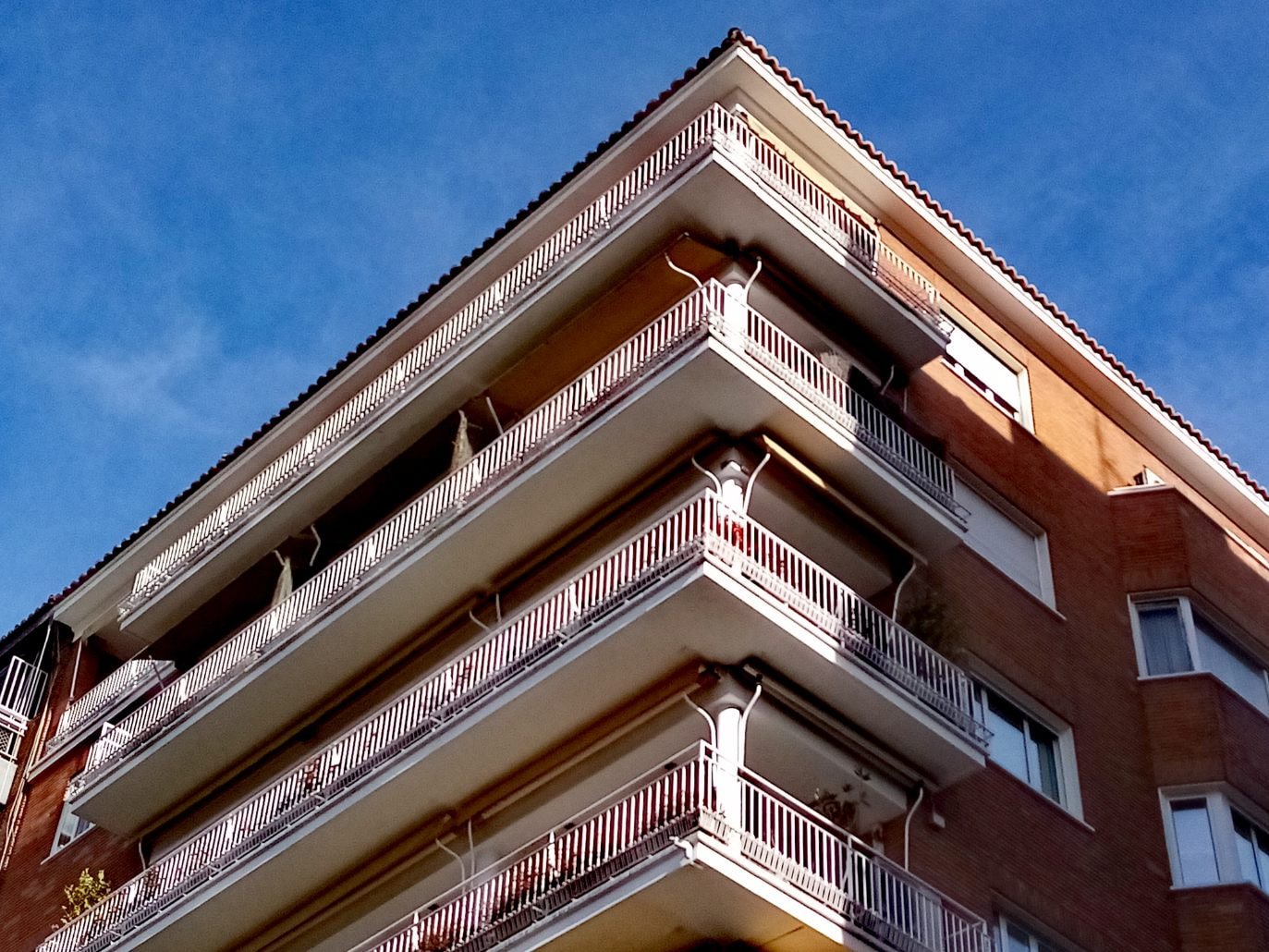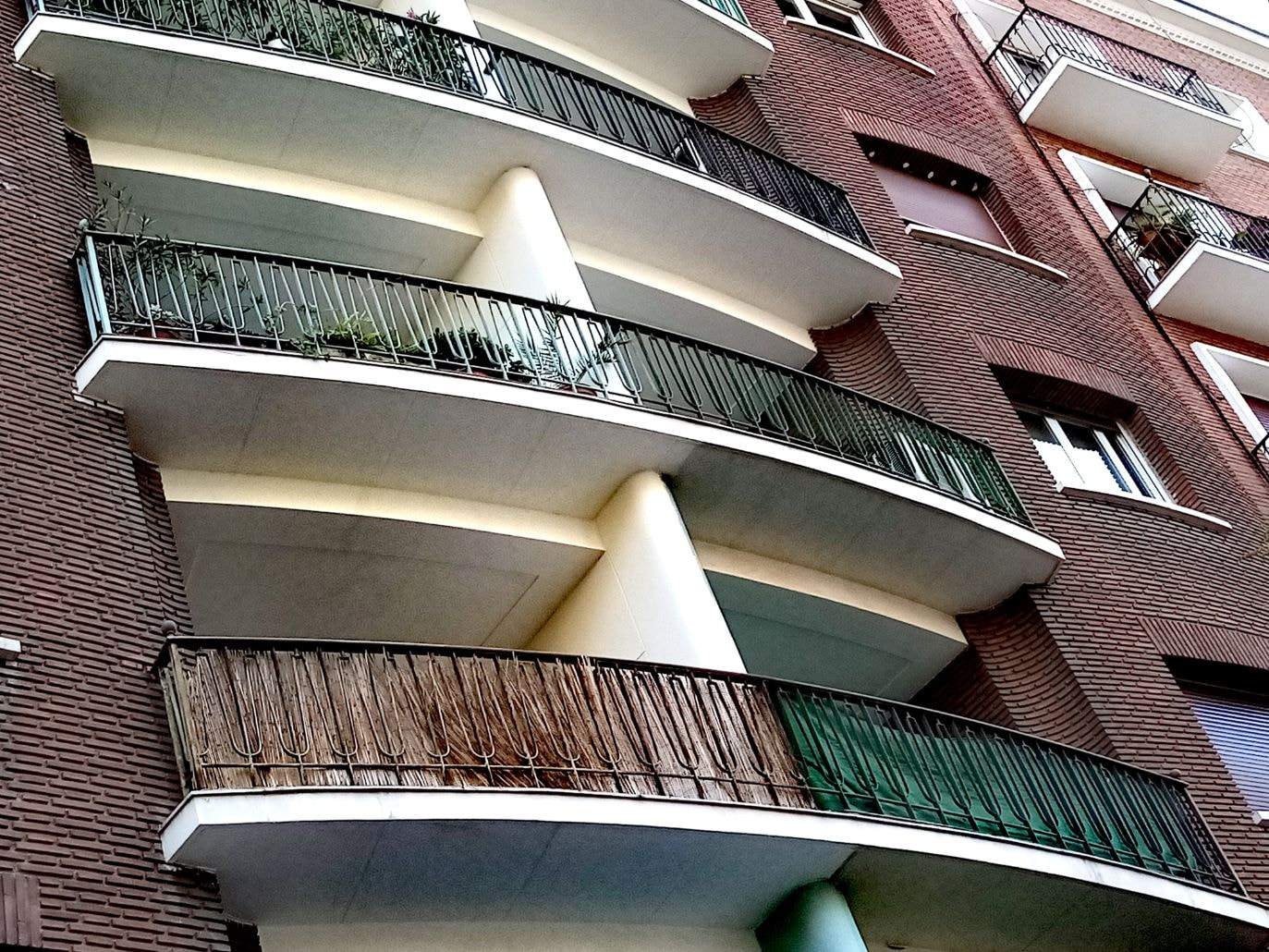 Viviendas en Gaztambide 63,desconozco arquitecto, (1953), me encantan la delicadeza de las terrazas, y las celosías de hormigón en las esquinas,