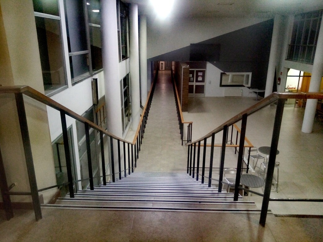 Espero que me perdone, al salir no pude evitar hacer tres fotos. A mi me parece una maravilla, y la pena es que no se pueda visitar, respetando al alumnado, y disfrutar de la arquitectura de los espacios.