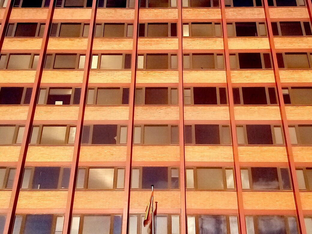 Siendo una sede de un Ministerio, ¿Por qué no instalan un Escudo de España donde anteriormente estaba el escudo del sindicato vertical?