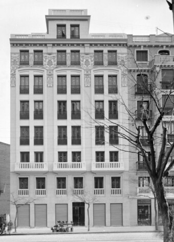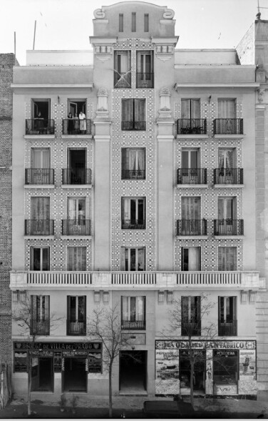Y por último, y aprovechando una imagen más del fondo Lladó, un verdadero tesoro, una fachada mostrando un elemento característico también de la arquitectura madrileña de las primeras décadas del siglo XX y que ha sido burdamente eliminado de la mayoría de los edificios, el esgrafiado. Esta técnica fue muy muy común en innumerables edificios que hoy se nos presentan con unos secos paramentos planos y sin gracia en muchas áreas de los ensanches madrileños. ¿os imagináis una verdadera comisión del paisaje urbano apostando por la recuperación de estos acabados? La imagen de nuestra ciudad, sin lugar a dudas, cambiaría. Esto, también es patrimonio.