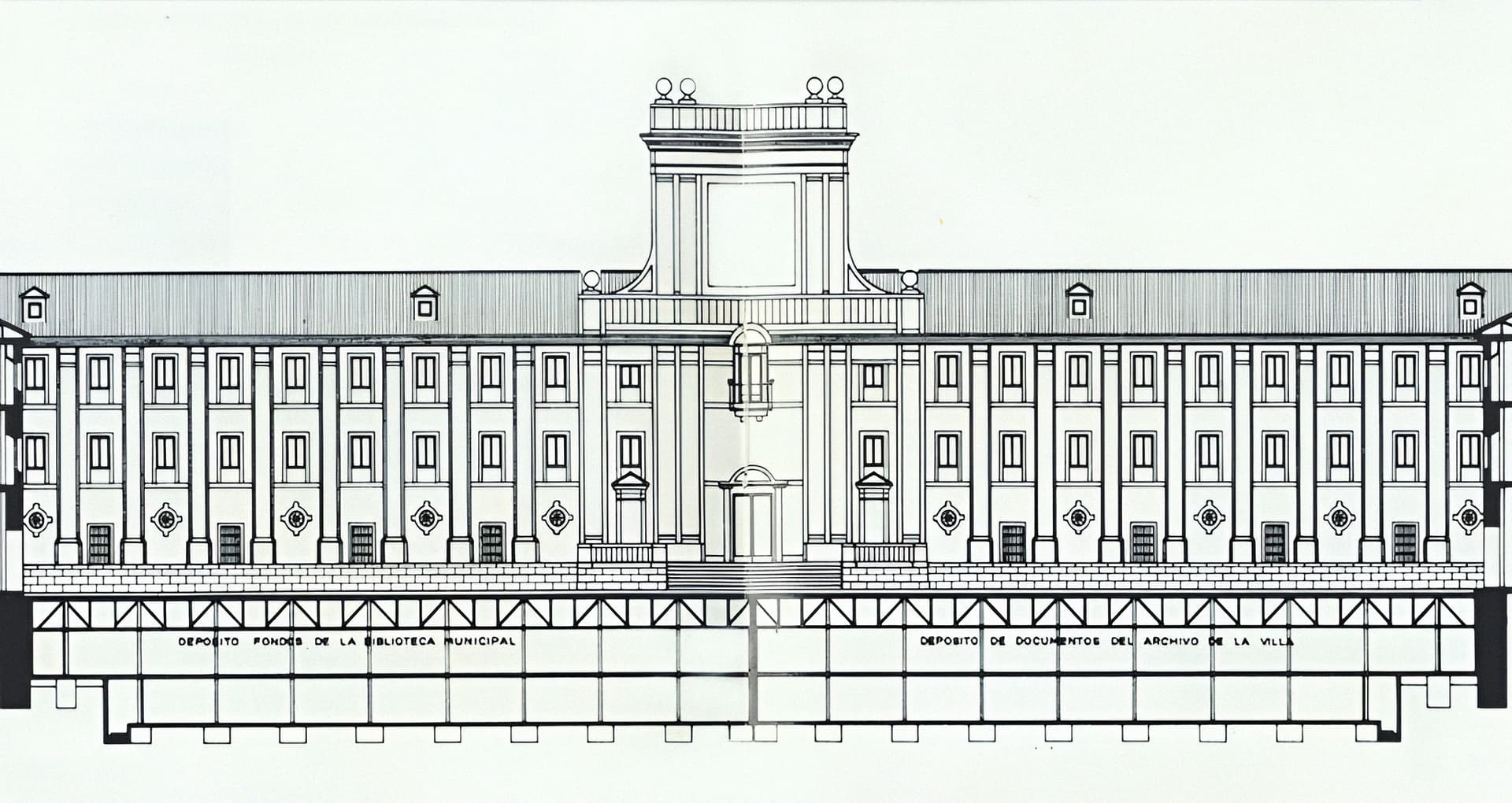 Recuperaría la escalera y terraza como se ve en el alzado, poniendo rampas a cada lado pegadas al muro.