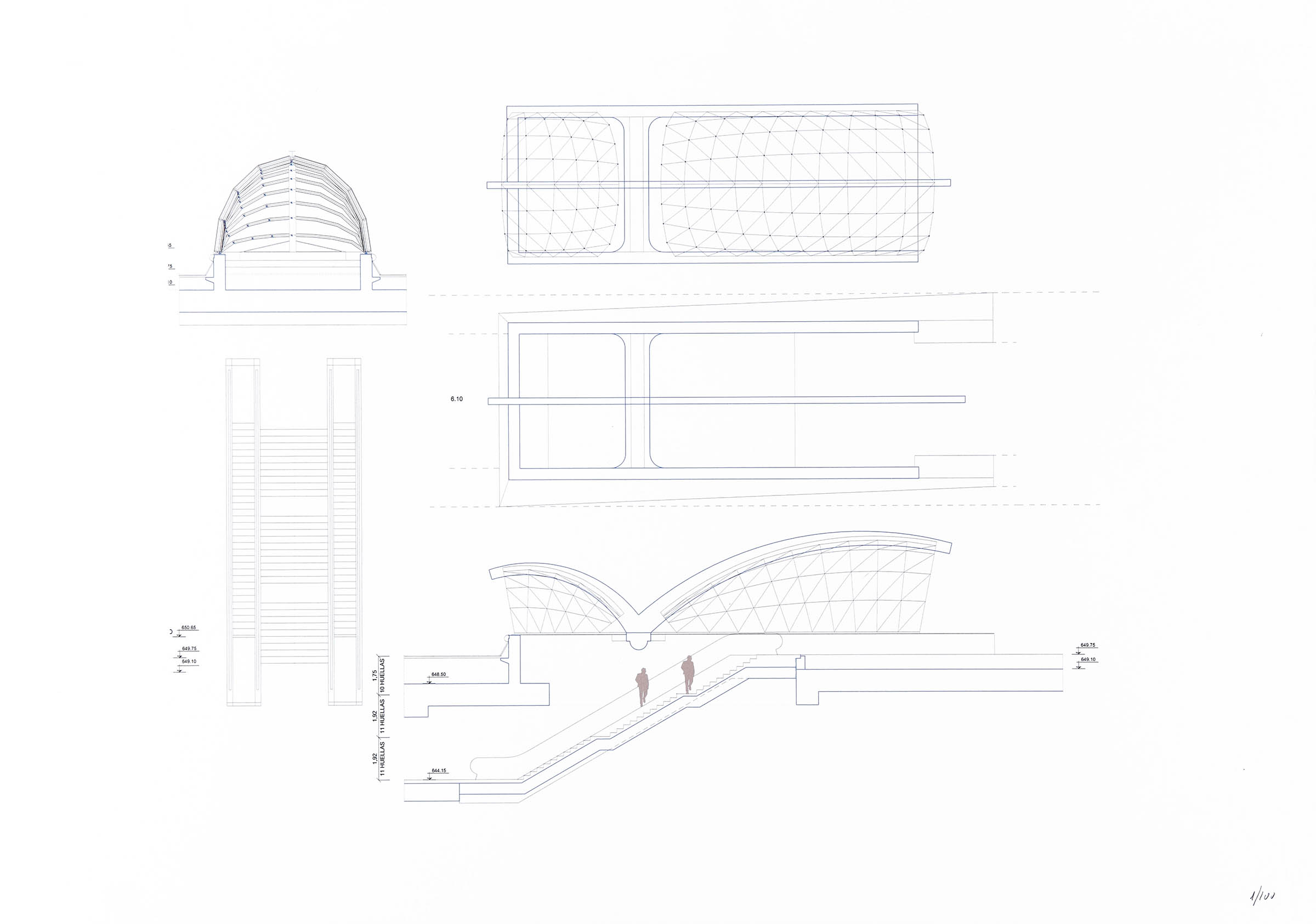 Fernández Alba, Antonio - Estación intermodal de transporte de la Puerta del Sol, Madrid. Alzado y planta (academiacolecciones.com)