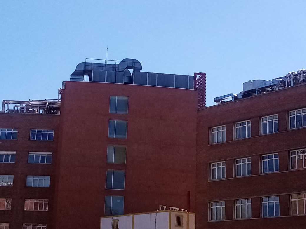 Un hopsital necesita una ventilación relativamente compleja, pero creo que es más producto de ir añadiendo y reformando que de que necesite ser así. En los nuevos hospitales, generalmente el arquitecto es hábil y se esconde, o se medio cubre.