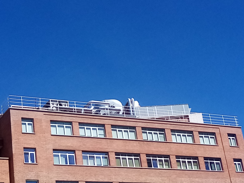En el Clínico, que el proyecto* es anterior a la Guerra, lo han cubierto con el mismo material que el solado de la azotea.