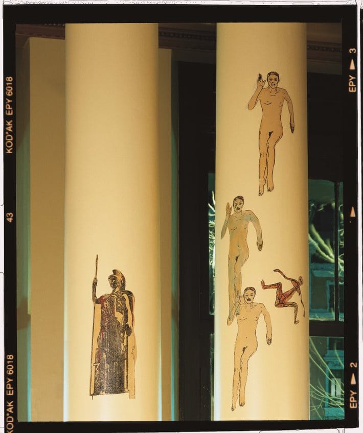 Con la figura de la columna pensaste bien. El que te informó no tenía ni idea. La figura la hizo Nancy Spero cuando impartió su taller de arte actual en el Círculo, en 1991. Mi mujer estuvo de alumna en ese taller.