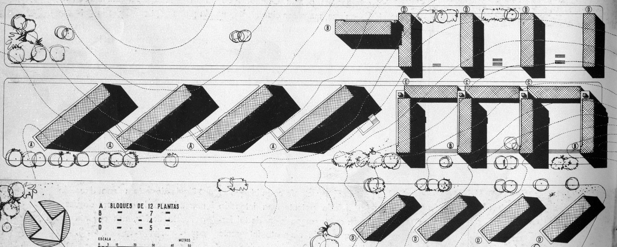 Esta densidad vertical, permite disponer de espacios para recreo, comerciales, escolares, religiosos, etc, consiguiendo un funcionalismo correcto “. (casi na, ya podíamos haber aprendido un poco, solo un poco, de algo que se dijo hace casi 70 años).
