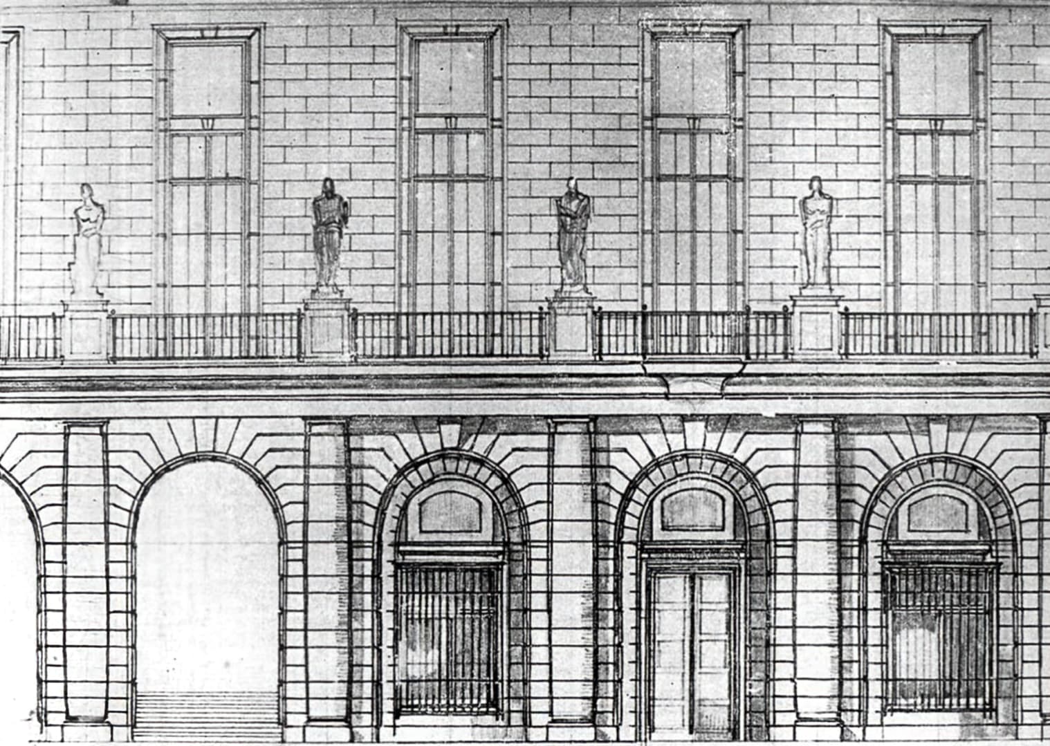 La fachada central inicialmente propuesta me parece mucho más sugerente que la construida.