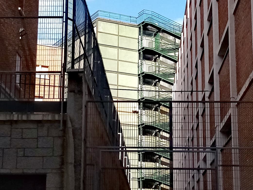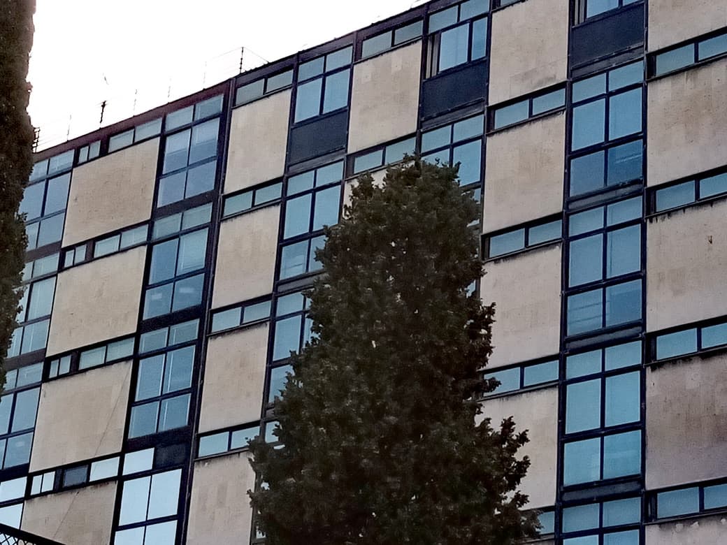 Las fachadas de un lenguaje puro y neto, definen un magnífico entramado epidérmico de raizes racionalistas, en clave neoplasticista, en un trazado vertical de secuencias “vano macizo”,