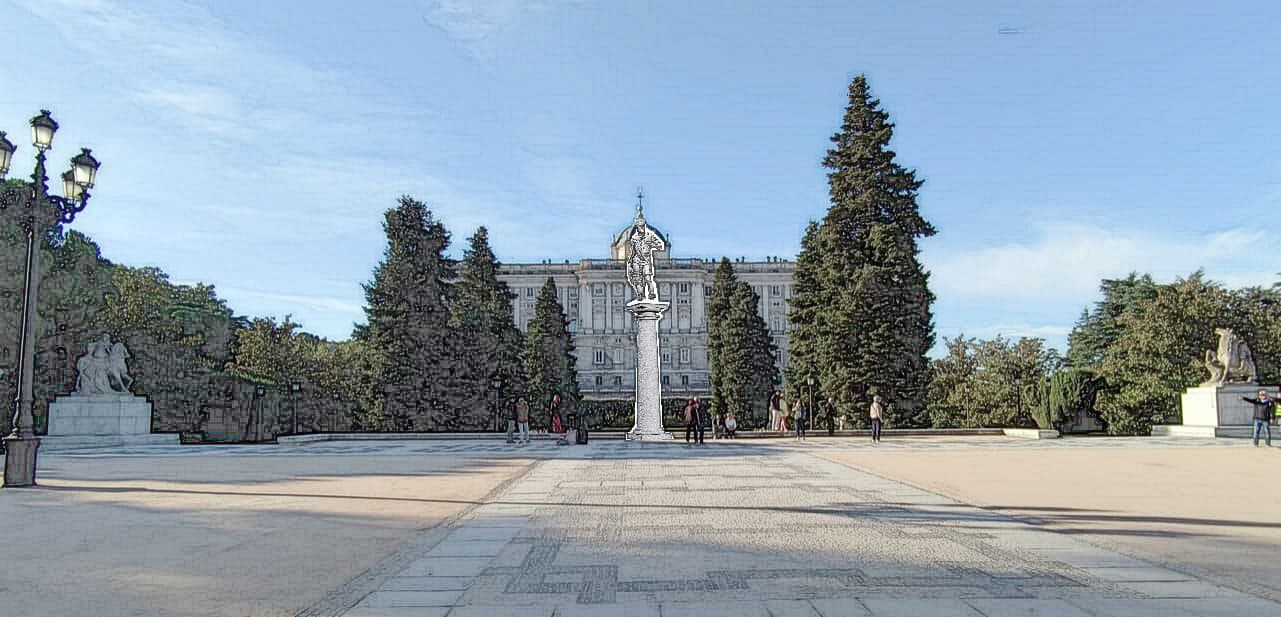Como mucho y como ya dije en algún lado, pondría ahí a Felipe II sobre una columna toscana, para crear un hito de inspiración renacentista.