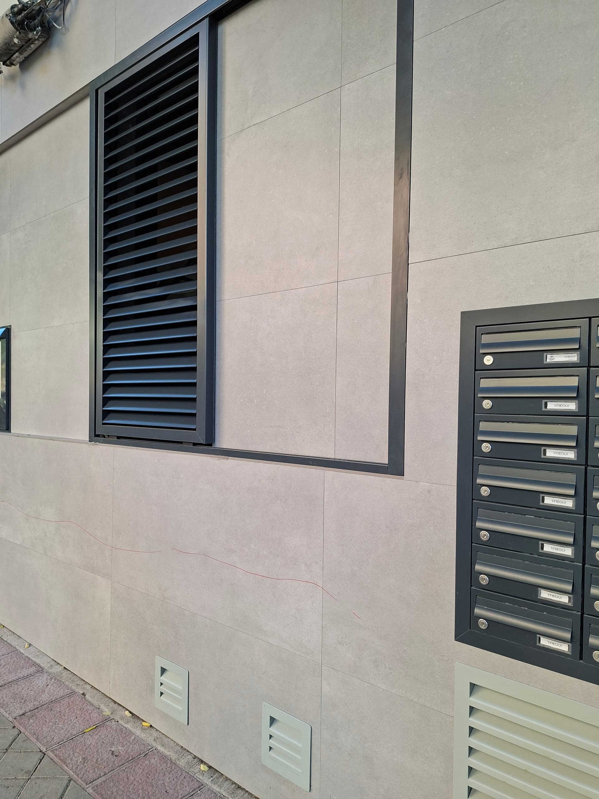 Vuelven a tener las persianas negras. Han pintado de rojo rotulador (no se si se nota).
