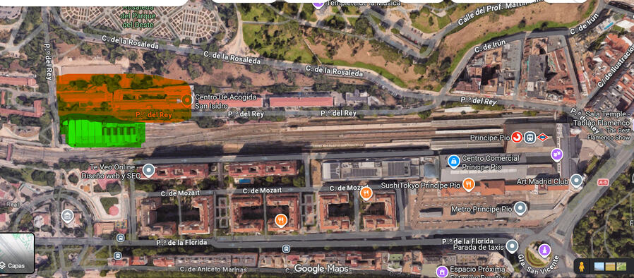 No creo que sea una zona que tenga urgencia el cubrirla; a mi ver las vías, la estación y el palacio Real desde el puente que cruza del parque de la Bombilla al del Oeste me sigue pareciendo una imagen sugestiva.
