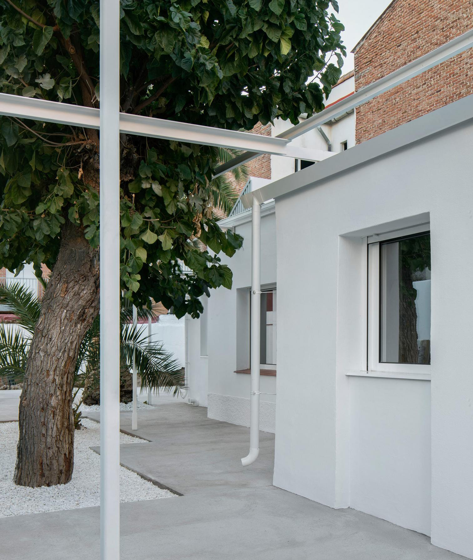 La intervención se realiza sobre una vivienda unifamiliar originaria de 1924, actualmente fuera de ordenación urbanística y completamente rodeada por edificaciones posteriores de mayor altura. El edificio presentaba un crecimiento desordenado, con cubiertas planas e inclinadas de distintas épocas, fruto de añadidos sucesivos y procesos de autoconstrucción que derivaron en importantes carencias constructivas y de habitabilidad.