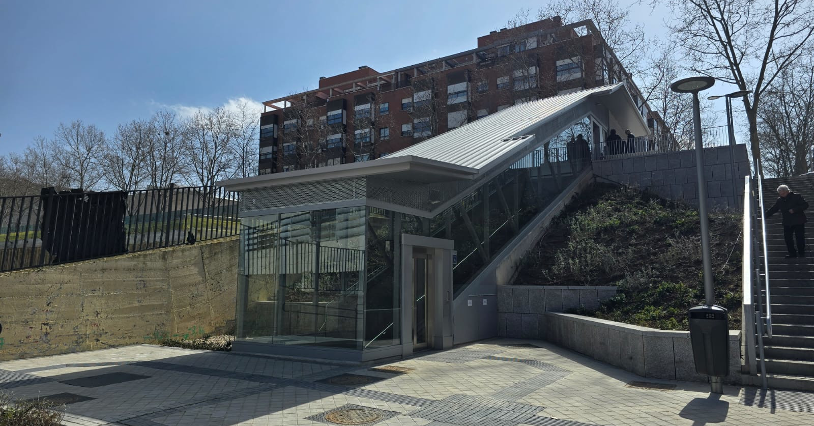 El mes pasado se inauguró el elevador inclinado que une las calles Sepúlveda y Monsalupe en Lucero (Latina), con un año de retraso frente a la fecha prevista.