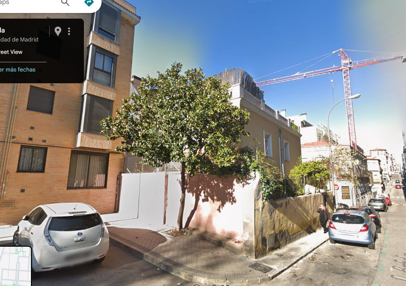 Solo entre estas calles, hay alrededor de 7-10 solares de este tamaño o algo más pequeñas completamente vacíos. Sin actividad, sin movimiento. Dejando crecer árboles con este tamaño, dejando ver los años que lleva con cero mantenimiento. Recordemos que estamos dentro de la m-30 y en una zona con tanta demanda como es Arganzuela, y más cerca de Madrid río. Se puede asemejar a algunas calles de Las Tablas o de Sanchinarro.