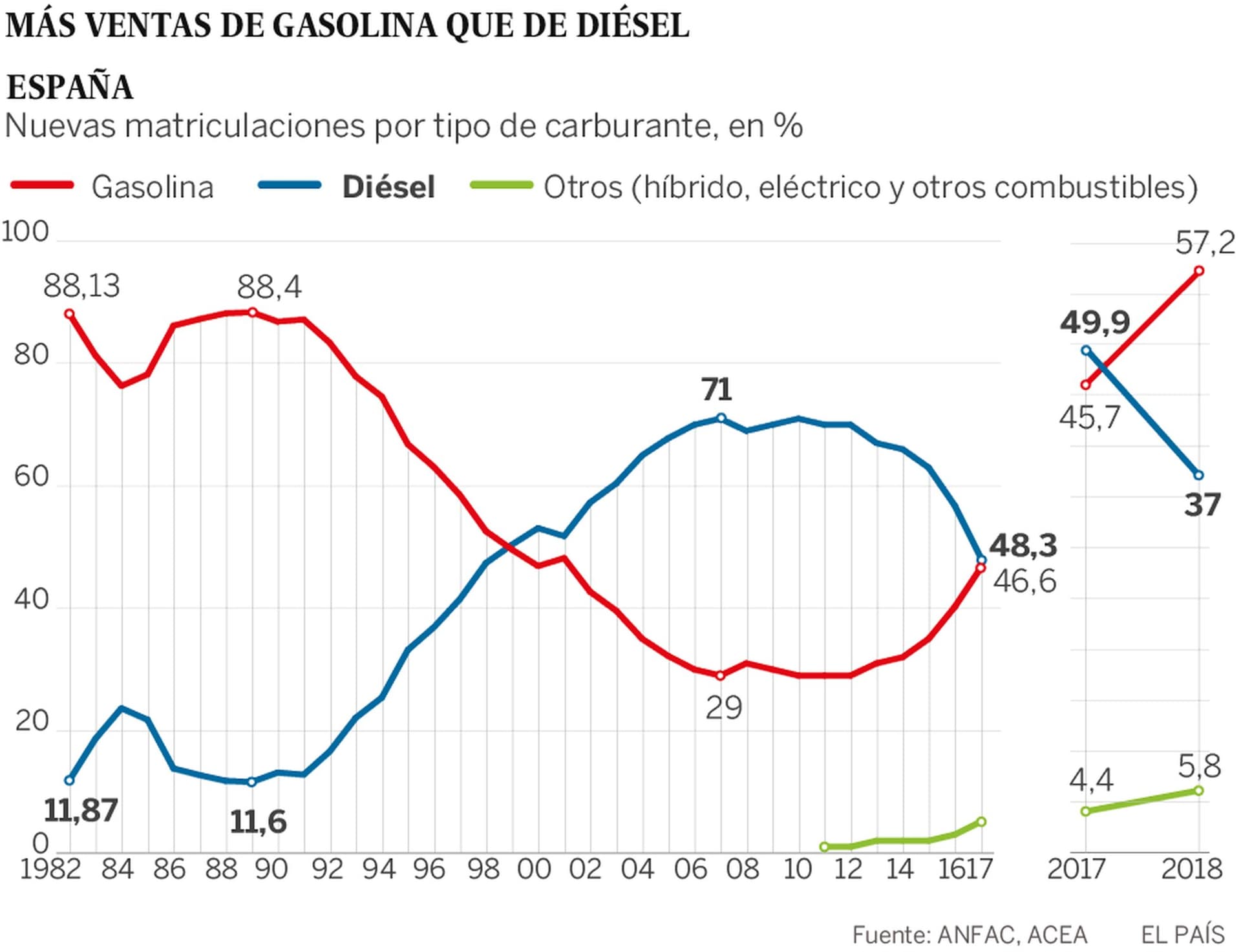 Solo hablan de dióxidos de nitrógeno. Los dióxidos de nitrógeno se producen por los coches diésel fundamentalmente, y las últimas generaciones de vehículos diésel han reducido enormemente estas emisiones. Además, si haces una búsqueda verás que la demonización del diésel y la caída de venta de diésel también cuadra con esos años.