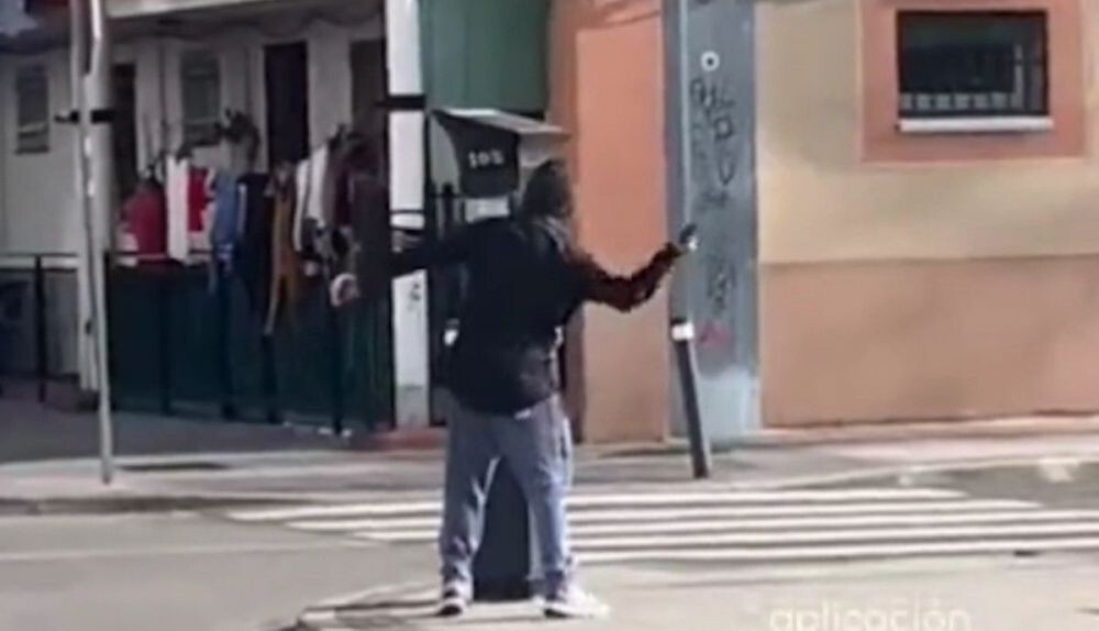El individuo, ataviado con una capucha, comenzó a dar golpes al objeto a plena luz del día en el barrio de Los Olivos