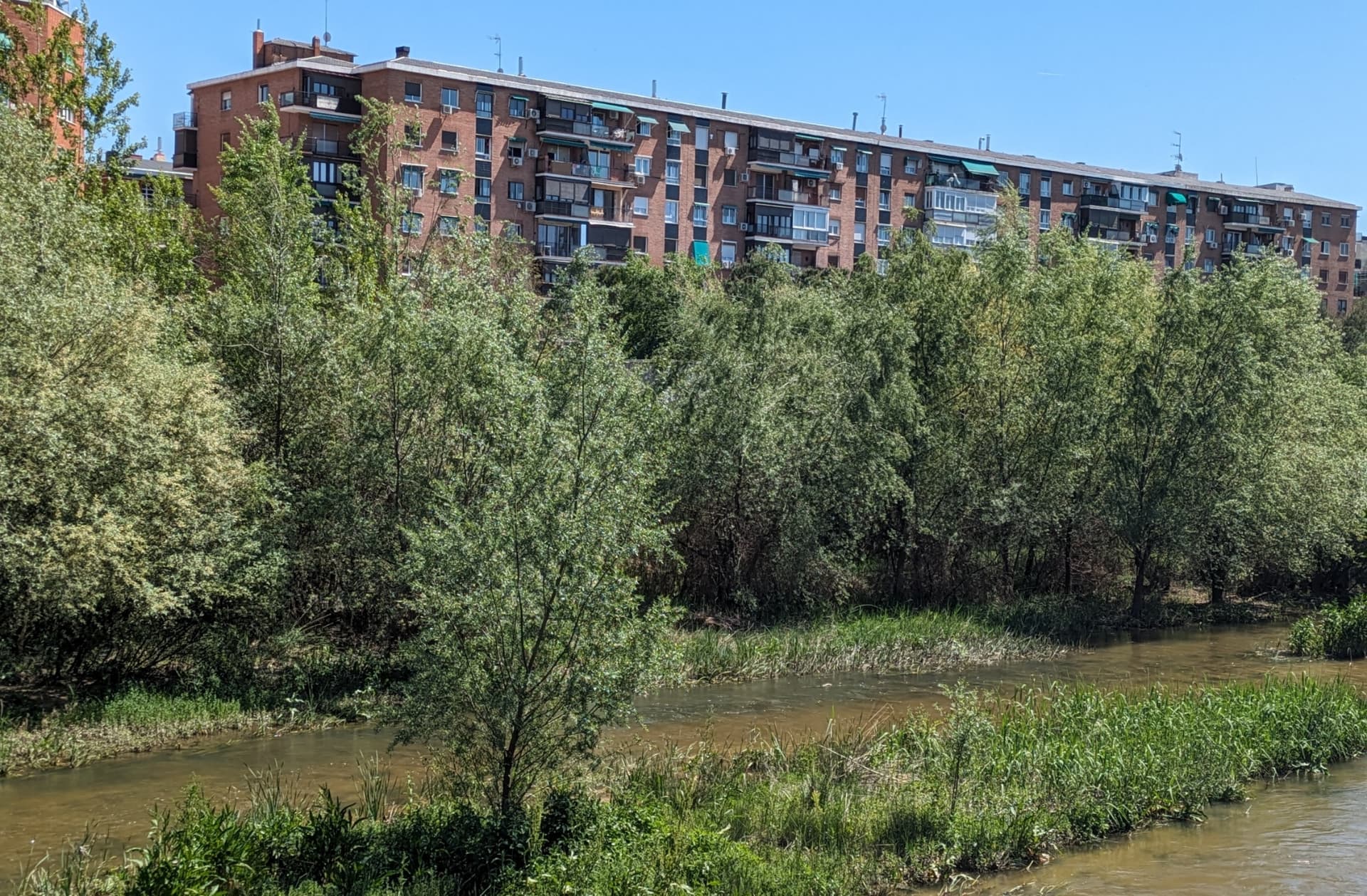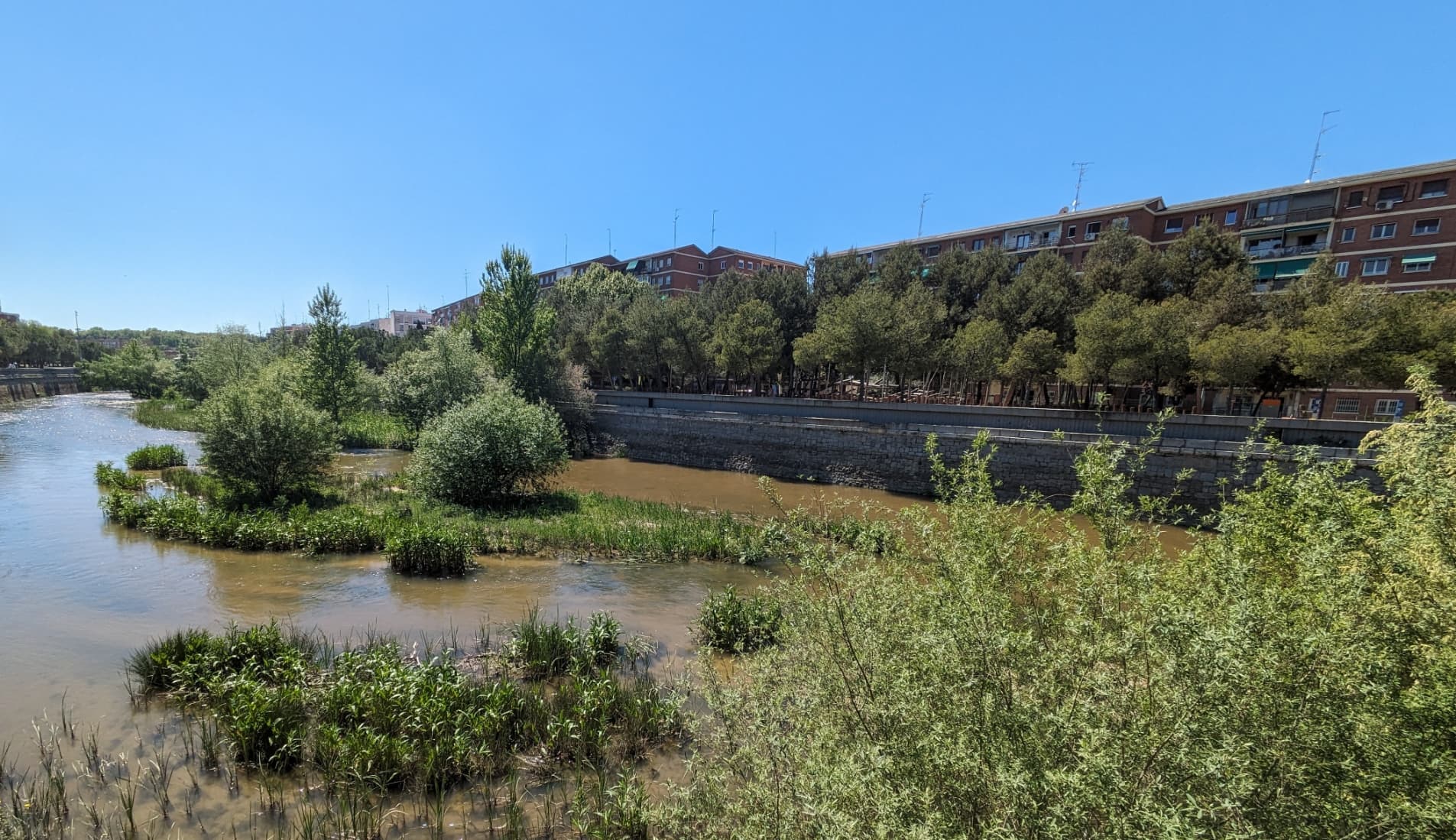 Pues así está ahora el río por barrio Casa de Campo.