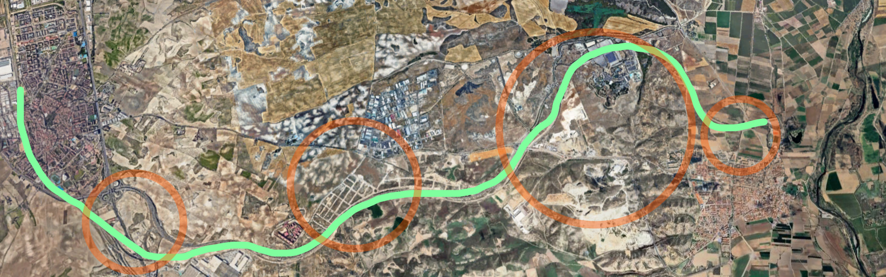 Eso sí, viabilidad más que cuestionable. Pasa por “las Infantas” (60 habitantes), Villamejor (?), Castillejo-Añover (?), Estación de Algodor (?)