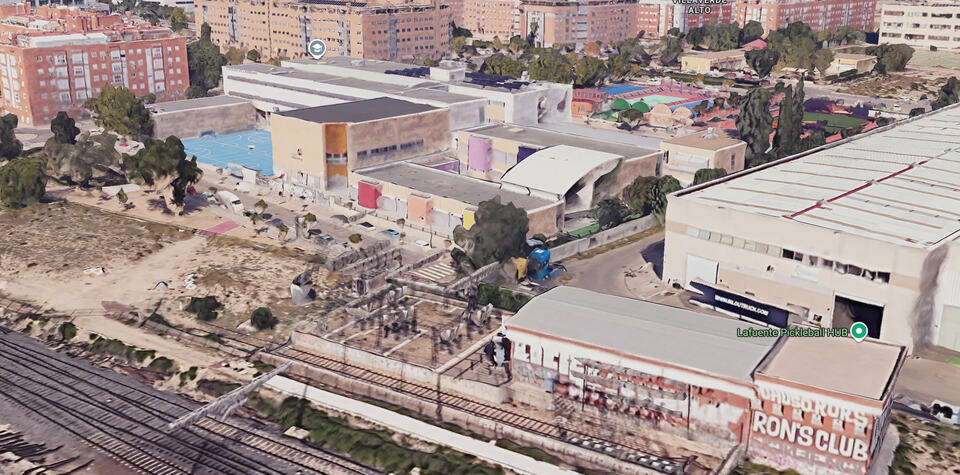Mira, si le dan una patada fuerte al balón desde el patio se les cuela en la subestación eléctrica. Una delicia y un ejemplo a seguir en todos y cada uno de los polígonos industriales que quedan en Madrid, qué duda cabe.