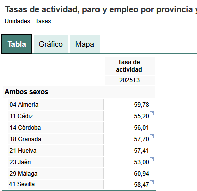 Según esto, Málaga es la provincia con más tasa de actividad de Andalucía y en la línea de Cataluña, Madrid o Murcia.