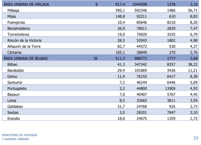 Por si te interesa, aquí los datos de las AU de Málaga y Bilbao del ministerio de Vivienda y Agenda Urbana (2025).