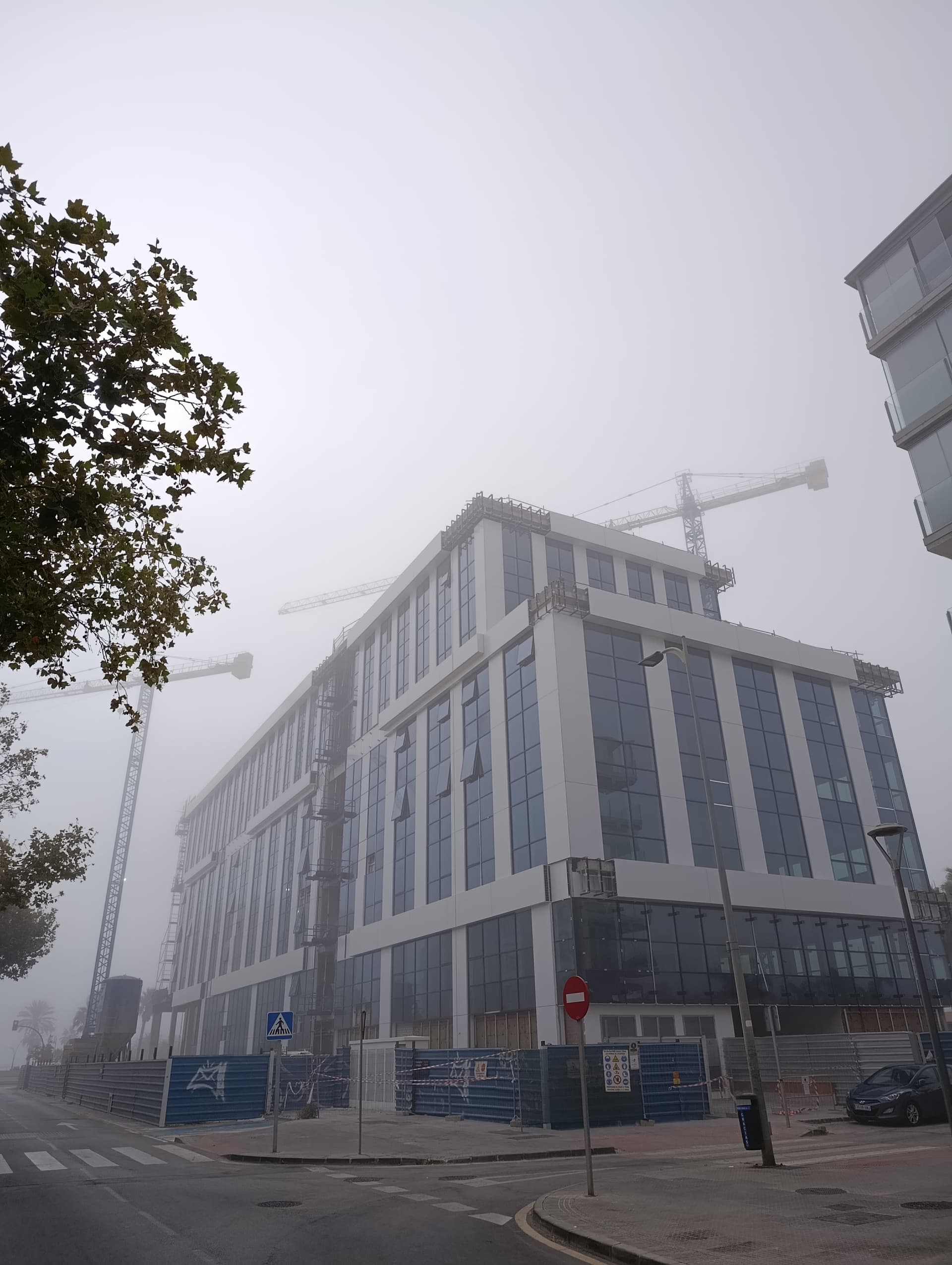 Por fin han empezado a acristalar el bajo del edificio, a ver si para antes de que acabe el año hay empresas instaladas.