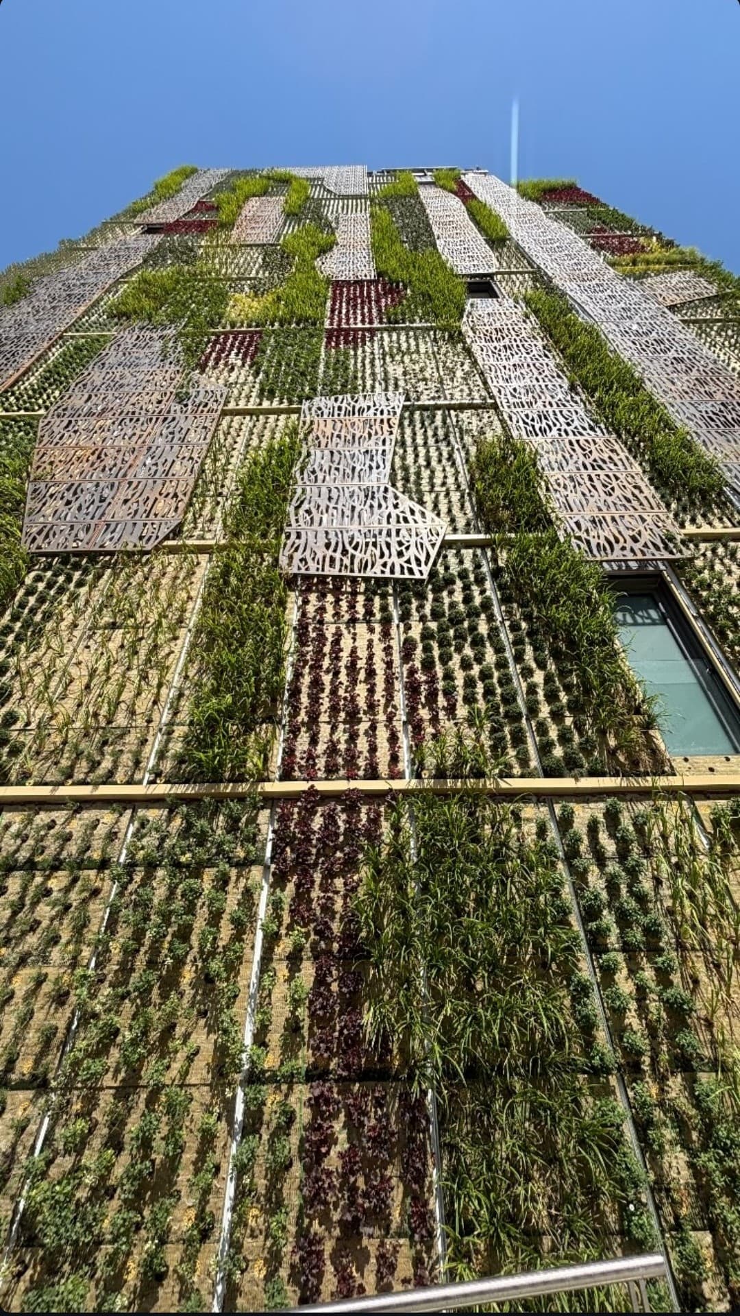 El jardín vertical ha quedado genial la verdad, con esas esculturas colgantes. Del instagram de Lamela: