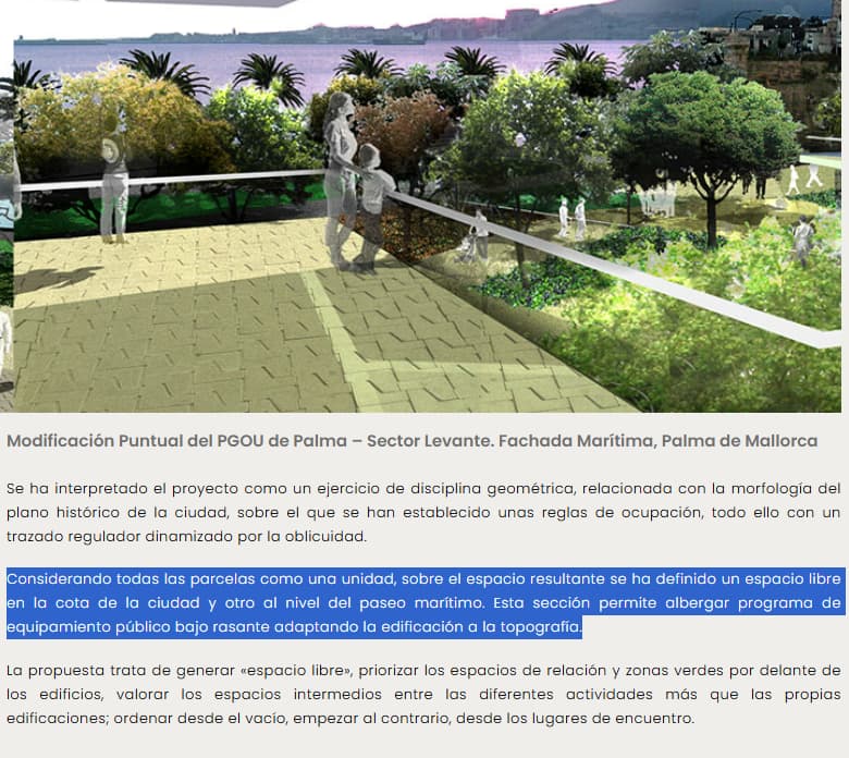 En Palma van a remodelar su fachada marítima disponiendo parcelas calificadas como zonas verdes a modo de balcón sobre suelos calificados de equipamientos, que es justo la propuesta de Mendez Álvaro: