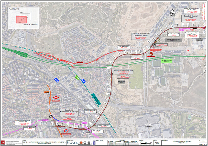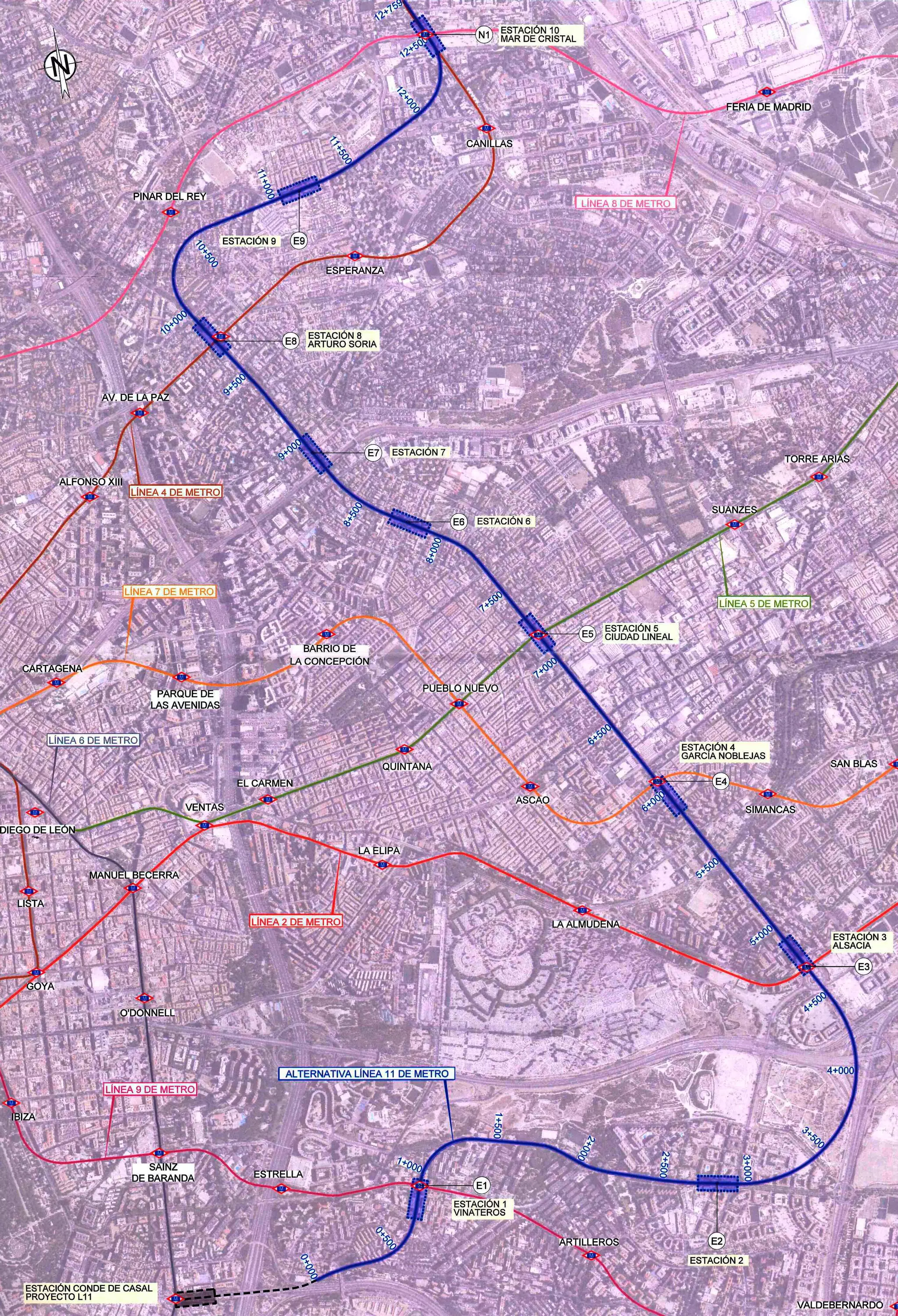 La estación se desplaza un poco hacia el norte, y SÍ habrá conexión con la actual estación de la L8 mediante un túnel (bastante largo a mi parecer). También la curva pasada la estación de T4 se hace un poco más amplia, y tristemente definitivamente la estación de Mar de Cristal con orientación oeste-este
