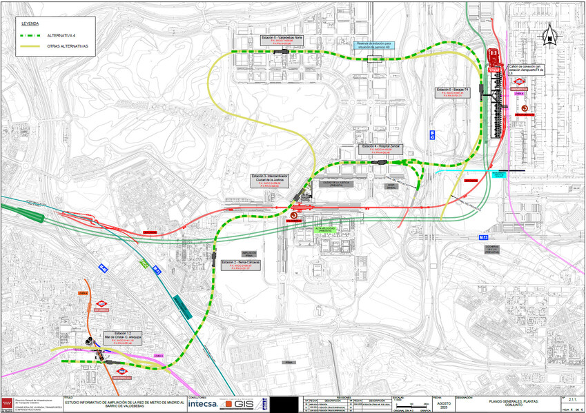 Pero la noticia es sobre las modificaciones de este trazado para el proyecto definitivo, como desplazar más al oeste la estación de Valdebebas Norte para hacer una nueva donde irá el centro comercial. Al ser una noticia sobre modificaciones del trazado, entiendo lo de que al decir “También se ha desplazado ligeramente —unos 80 metros— la estación que brindará una nueva conexión de metro a la Terminal 4”, se trata de una modificación respecto a la ubicación que sale en estos planos (haciendo hincapié en el también), ya que si no, no sería relevante de mencionar ¿no?