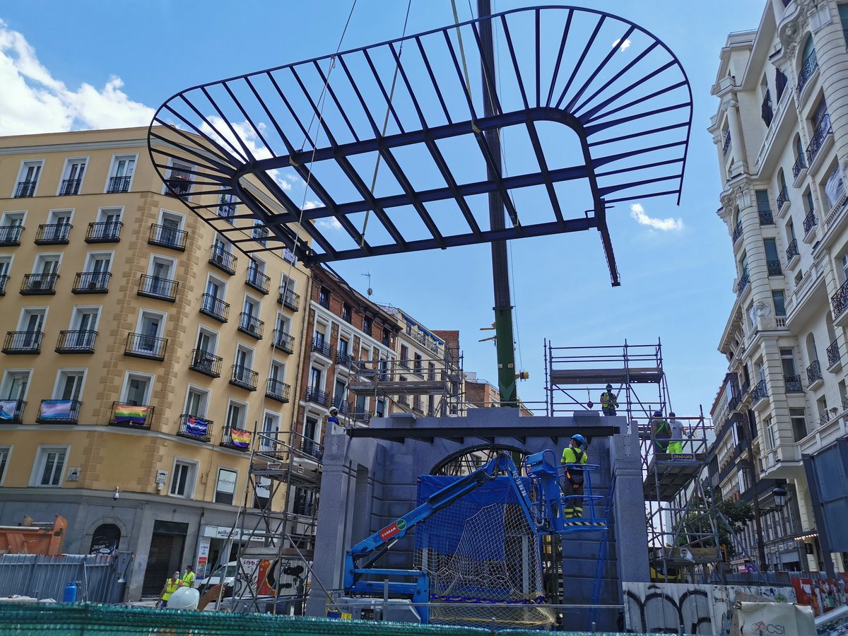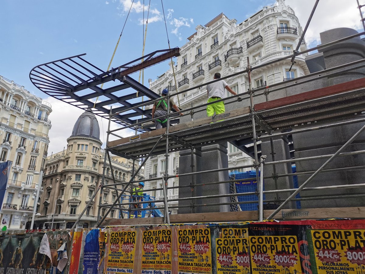 Eso si, ahora el templete no se verá desde Callao. Ya no está asomandose a Gran Vía. Está metido en la plaza Red de San Luis. Ya no tiene su antigua y espectacular ubicación asomándose con su gran marquesina de hierro y cristal.