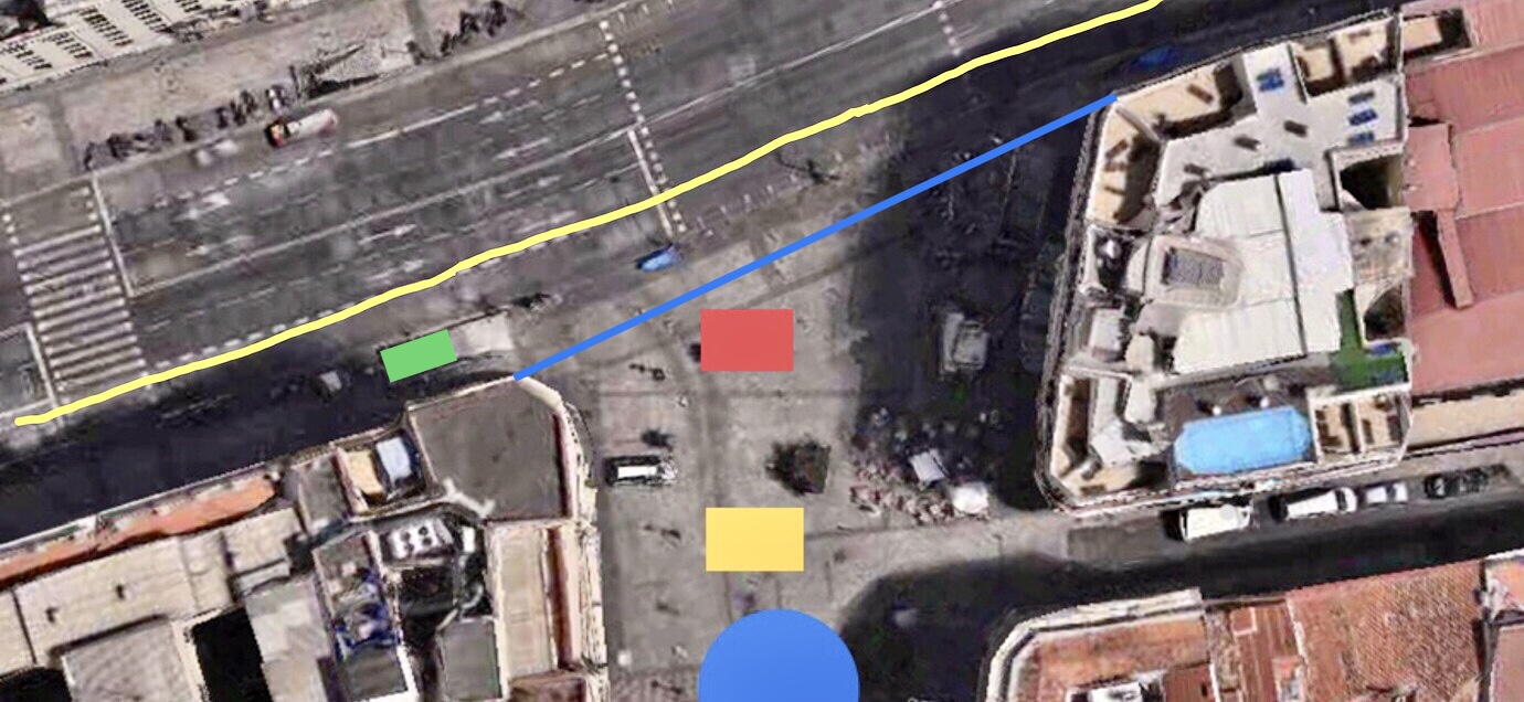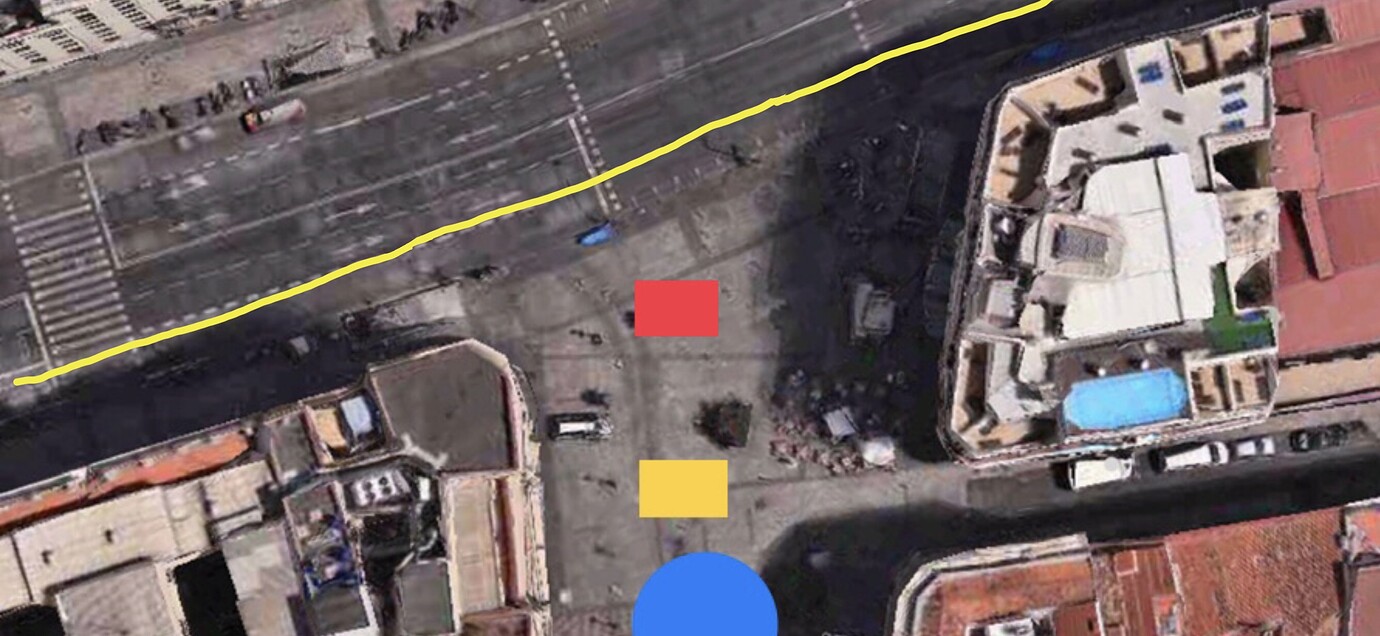 Vuelvo a poner la foto de la plaza desde arriba y el plano antiguo.