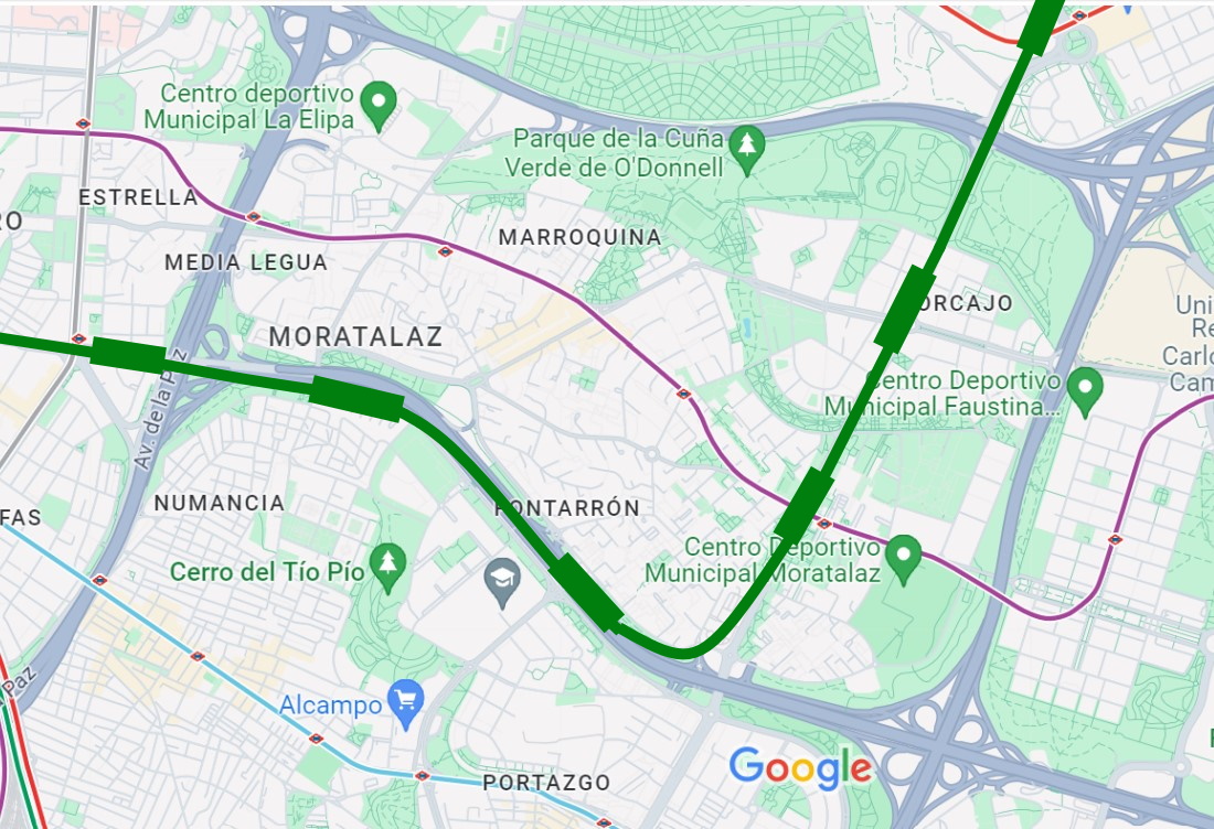 Cierto, pero eso debería ser una línea radial, no una que dé una vuelta hasta Valdebebas como una línea de autobús.