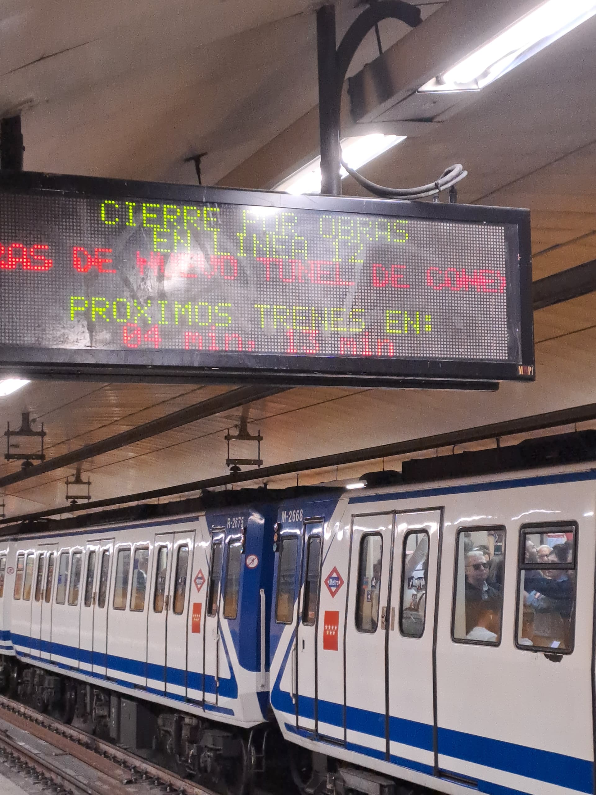 Sábado a mediodía, línea 1, estación de Tirso de Molina: frecuencias de 9 minutos.