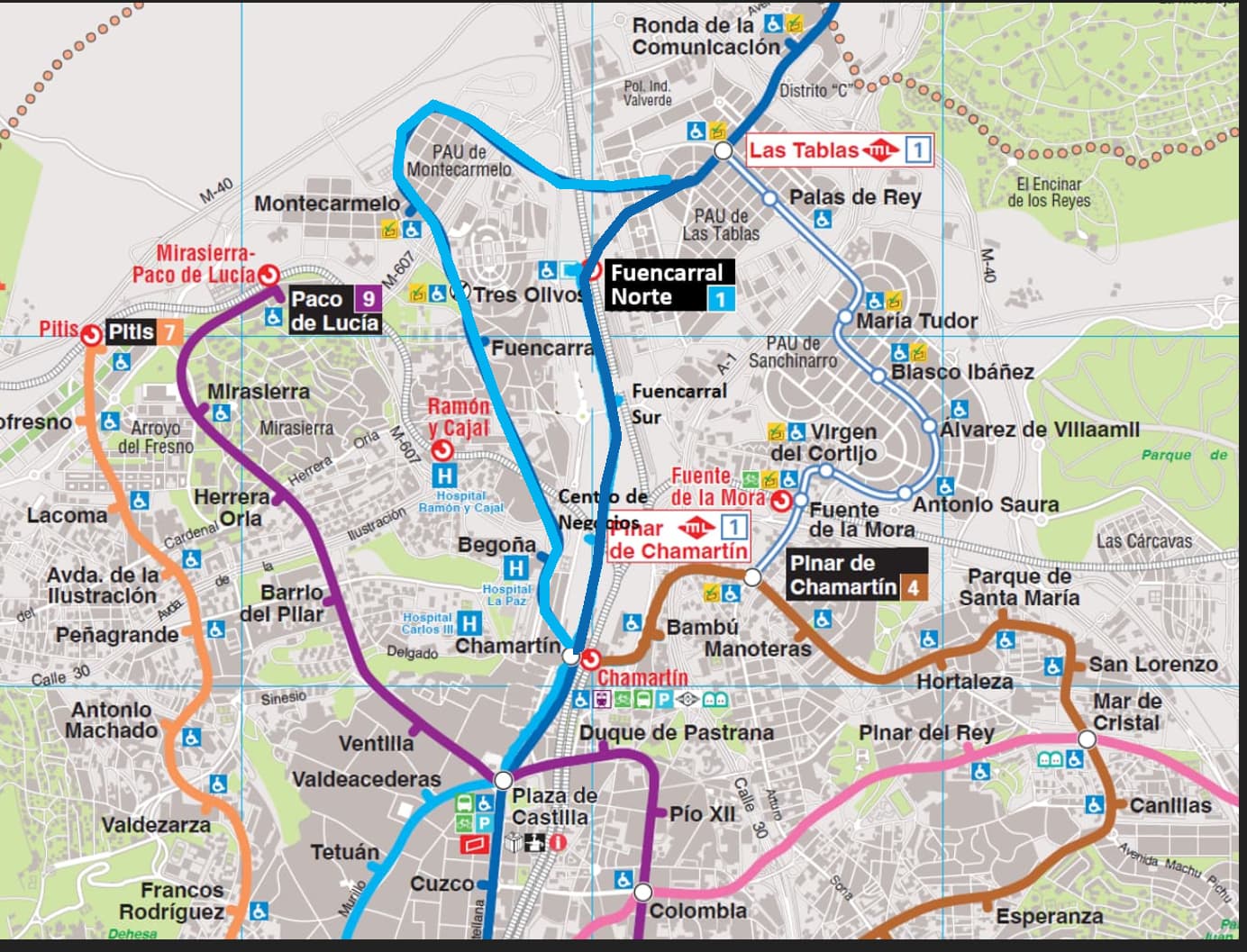 Hacer líneas de metro que coinciden en Madrid Nuevo Norte sí pero ampliar la L2 o metro a los nuevos desarrollos del sureste o una nueva circular exterior o simplemente llevar el metro a zonas donde no lo hay, no. No entiendo la necesidad de llevar la L1 a Madrid Nuevo Norte, lo suyo sería hacia Sanchinarro, Las Tablas o Valdebebas… Madrid Nuevo Norte va a tener la línea esta sin conductor, paradas de cercanías, autobús y ahora la L1, todo esto haciendo el mismo trazado, es decir, duplicando trazados, es decir que ningún sentido tiene esto