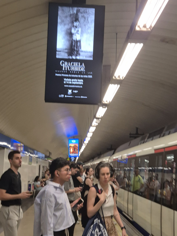 06:35, línea 5, estación de Marqués de Vadillo. Coches tan llenos que no se puede entrar, muchos sin aire acondicionado, frecuencias de paso como se ve en el letrero luminoso. Así, a diario. No sé si es que tengo mala suerte, ¿soy al único que le pasa?