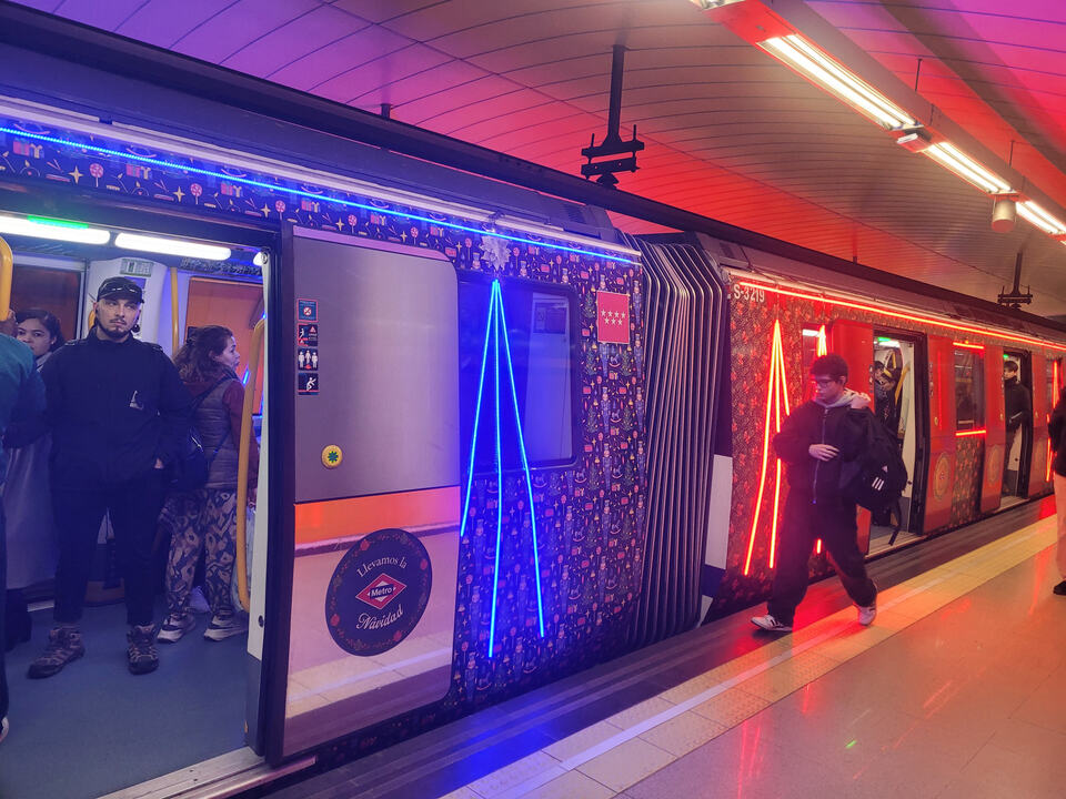 He tenido la “suerte” de montarme en el tren de la Navidad. La estética es discutible, los vinilos impiden ver lo llenos que están los vagones, pero lo que realmente es molesto son las luces Led. Hay personas fotosensibles a las que esas luces molestan.