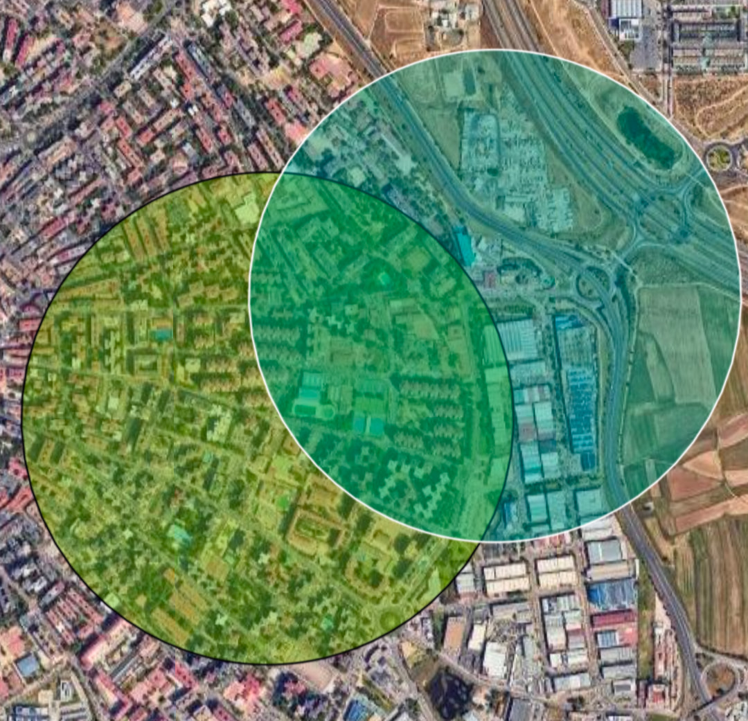 Eso lo supongo, pero mira lo que pasa si creo dos círculos de 600 metros de radio desde donde has puesto los dos puntos: