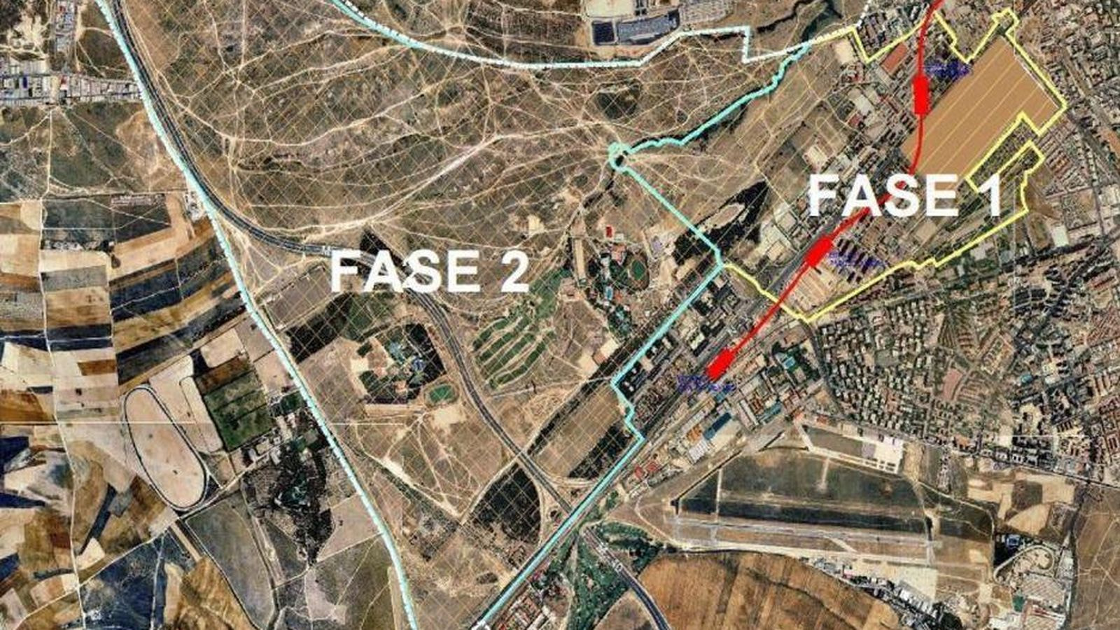 La Fase 1 y 2 cubiertas por Dario Gazapo, Empalme y Campamento y los edificios mas cercanos a Parque Europa Aviacion Española