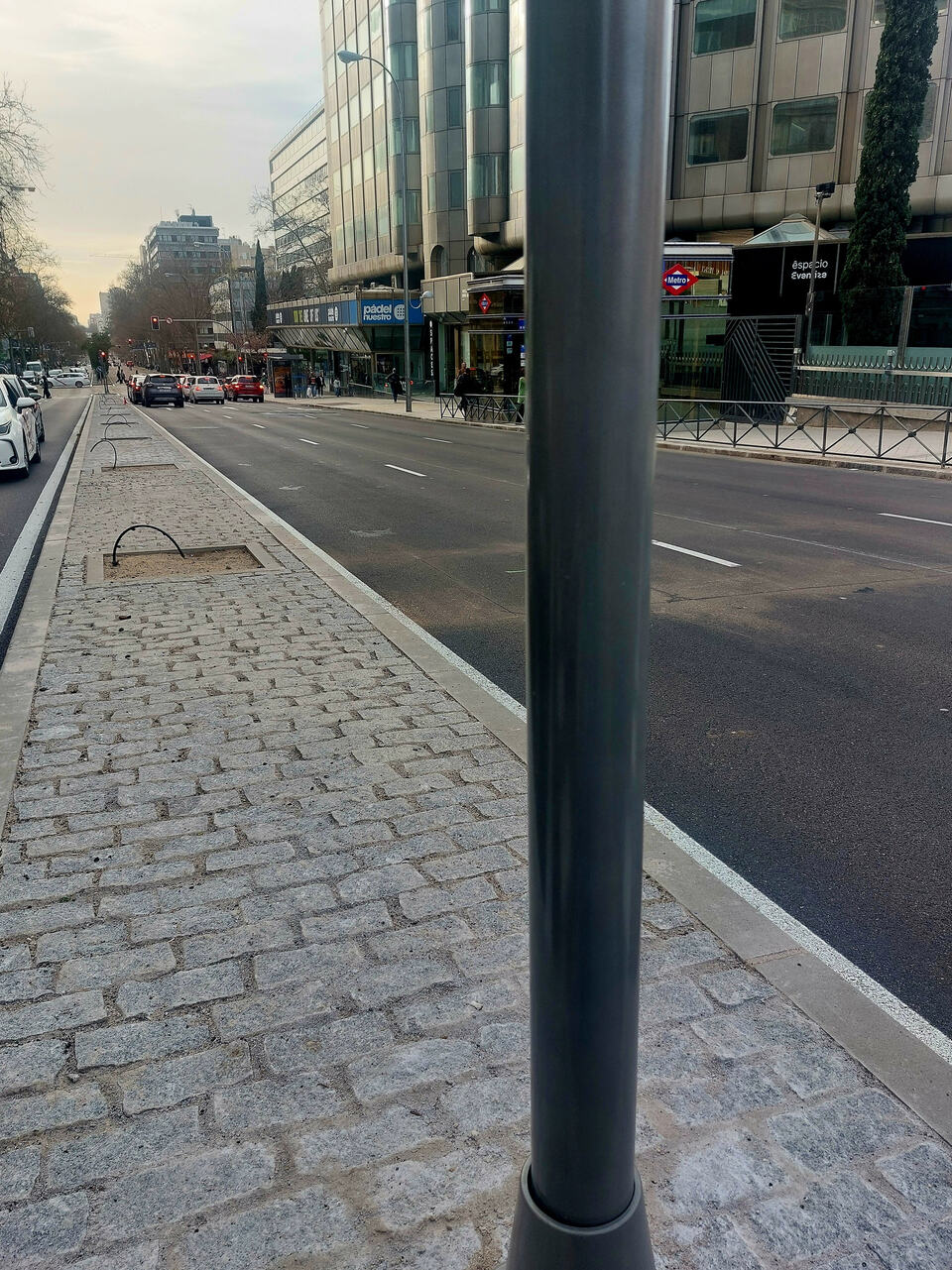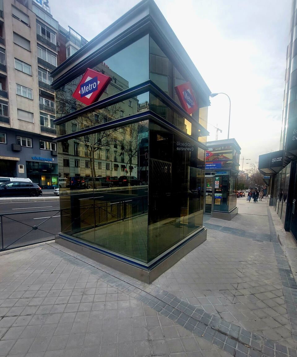 La semana pasada terminaron las obras de instalación de ascensores en Avenida de América. Esta instalación -que se inició en julio de 2022- ha terminado con una pequeña reforma del entorno: salida de emergencia del metro, nueva parada del autobús 12, y pequeña mediana en la “autopista de María de Molina”.