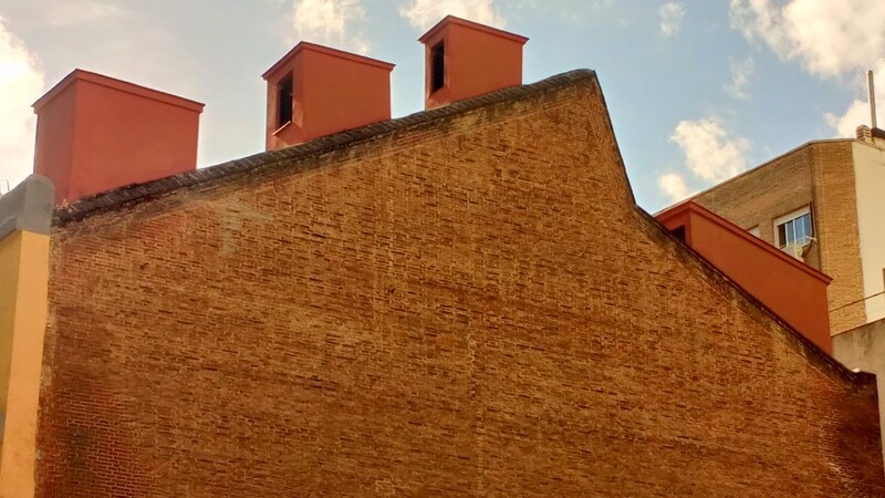 No os quedéis solo con la medianera; a mí me parece hermoso este conjunto de ladrillo visto, con diente de sierra y cercheado para la iluminación,